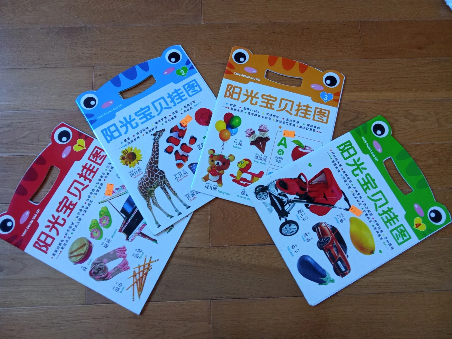 This set includes four colourful children's books, covering animals, the alphabet, and common objects. They're designed to help young learners. Each book features clear illustrations and labels to aid in early education.