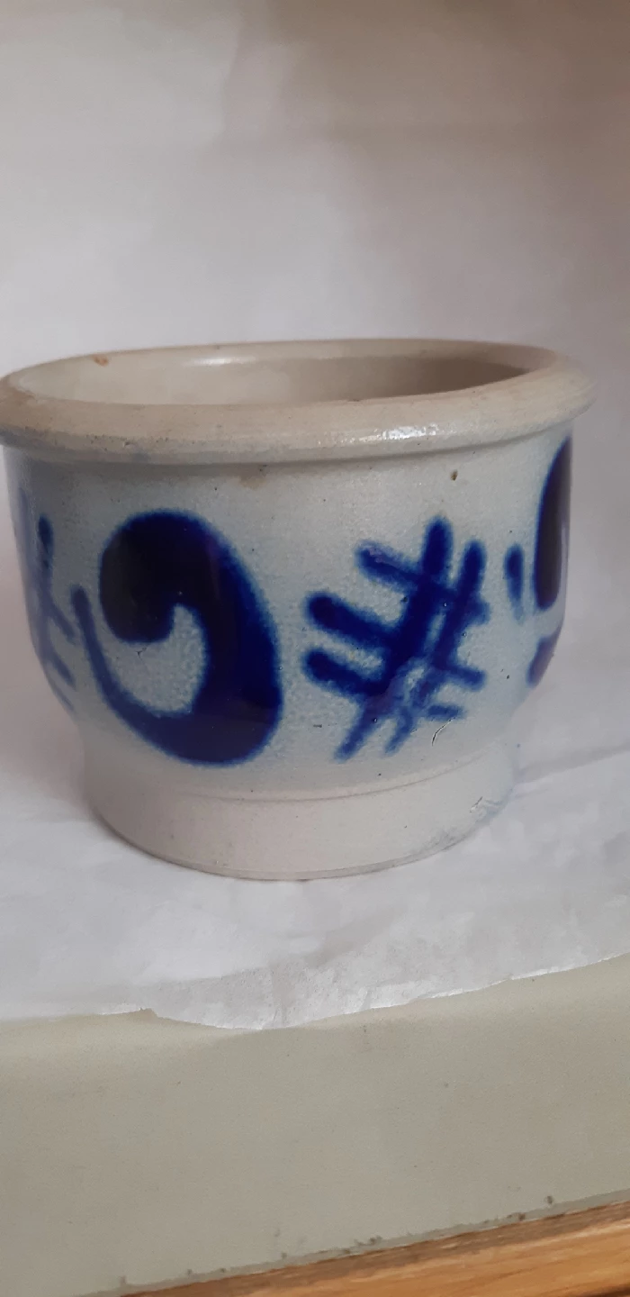 3. Vintage blue and white pottery with a handpainted scene... The image is "The Farmer's House in Winter" (produced by Currier & Ives).