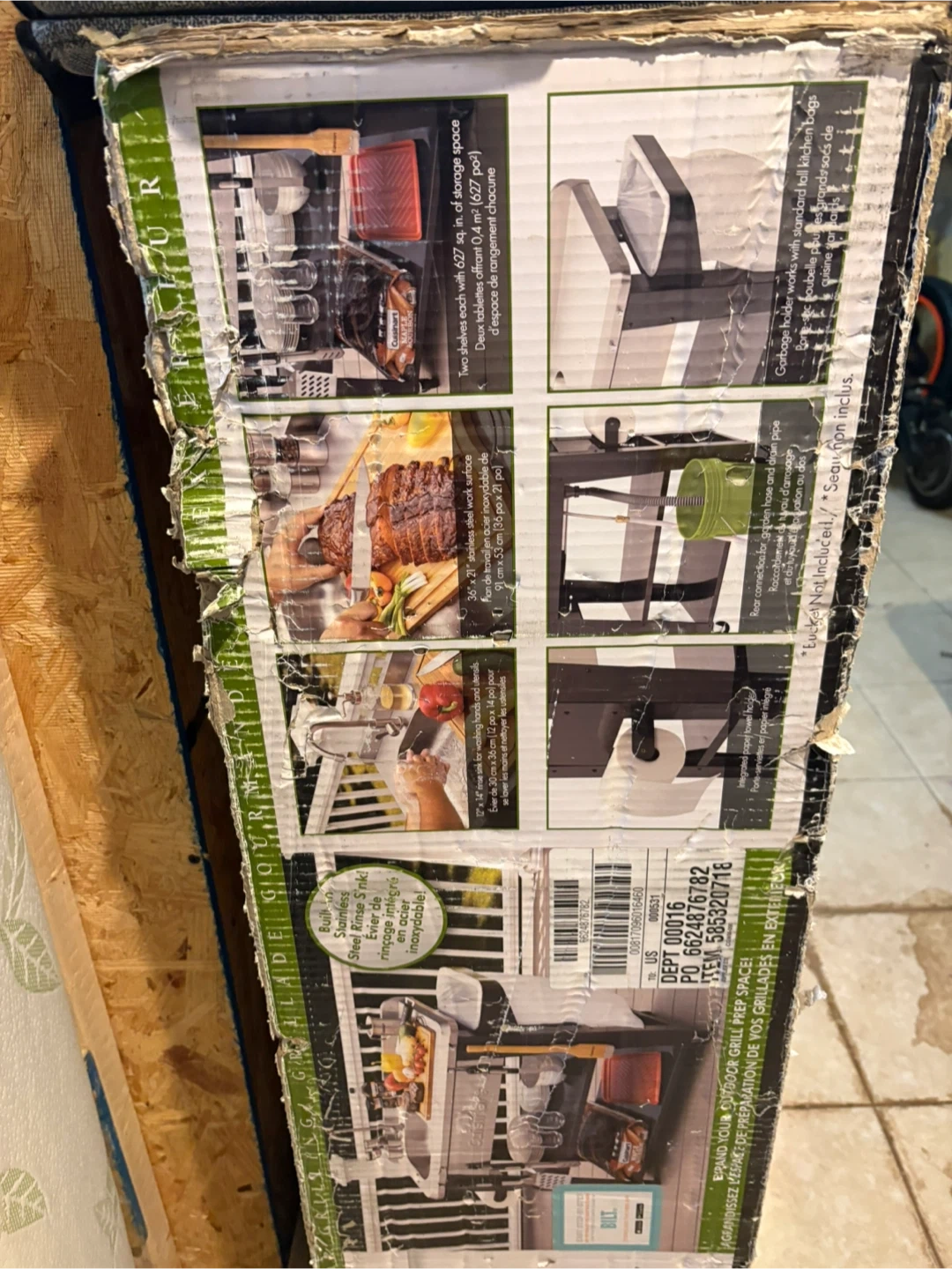This Cuisinart Deluxe Outdoor Prep Table is designed to expand your outdoor grill prep space. It includes a stainless steel sink with a hose, a cutting board, and multiple shelves for storage. The table also comes with various grilling tools and accessories.