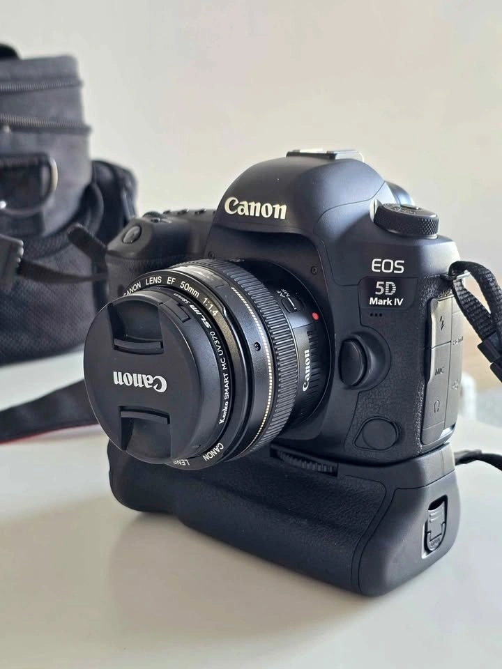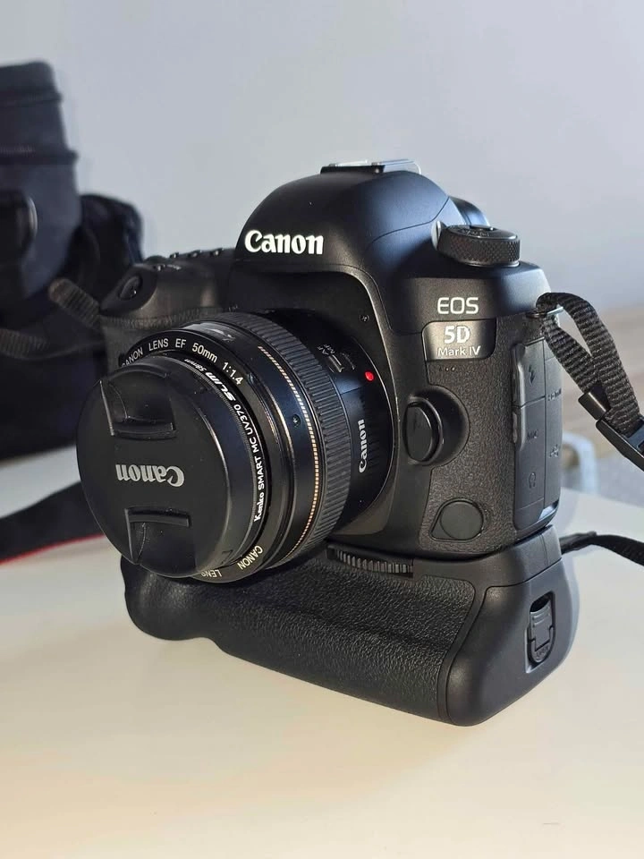 Canon EOS 5D Mark IV DSLR camera body. Shutter count is approximately 3,000 actuations, so it's barely used and in practically new condition. The condition is excellent, with a clean sensor and no scratches; it's been well cared for. Included is the Canon BG-E20 Battery Grip for extended shooting, 2 Canon LP-E6 Batteries, and a Canon LC-E6 Charger. Also comes with a Canon EF 85mm f/1.8 USM lens, which is great for portraits with beautiful bokeh, and a Canon EF 50mm f/1.4 USM lens, a fast prime lens perfect for low light. A protective camera bag is also included. I'm selling because I'm upgrading my kit, and this gear deserves to be used! Check my profile for more photography gear listings – bundle deals are available.