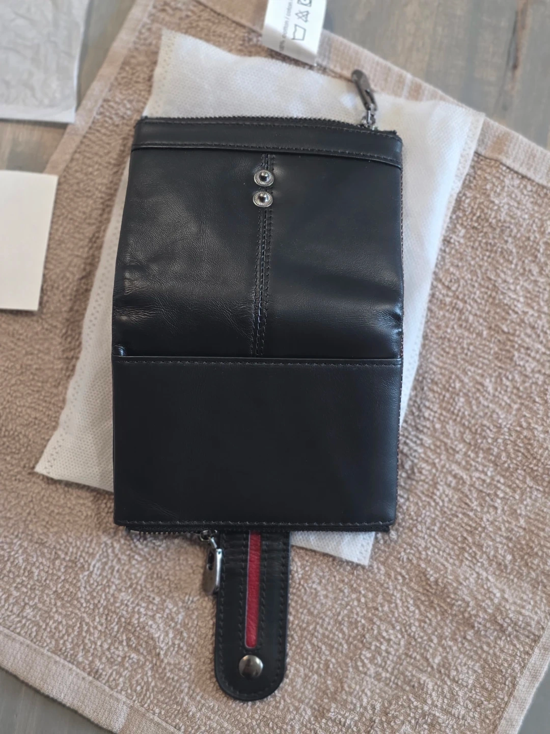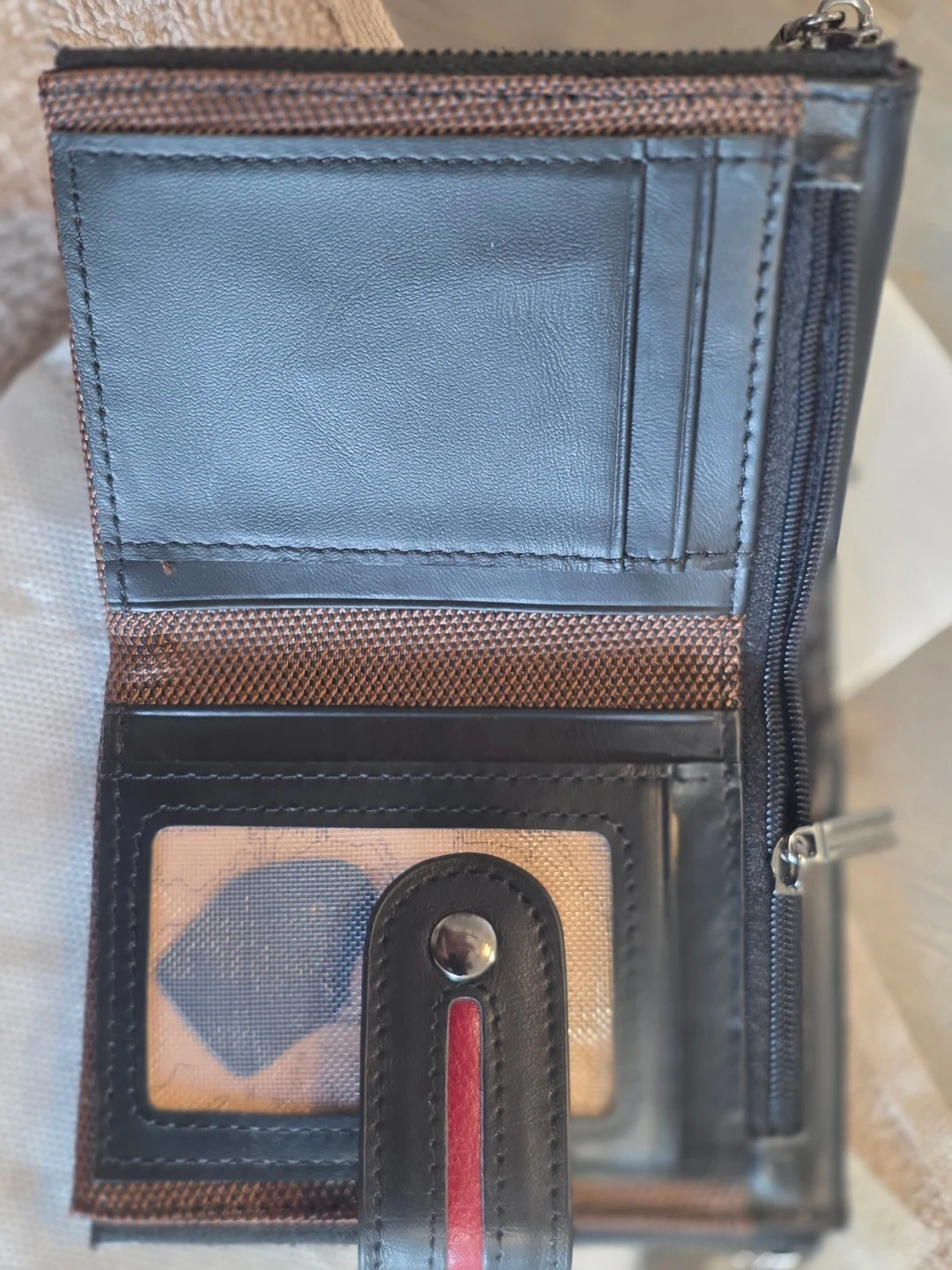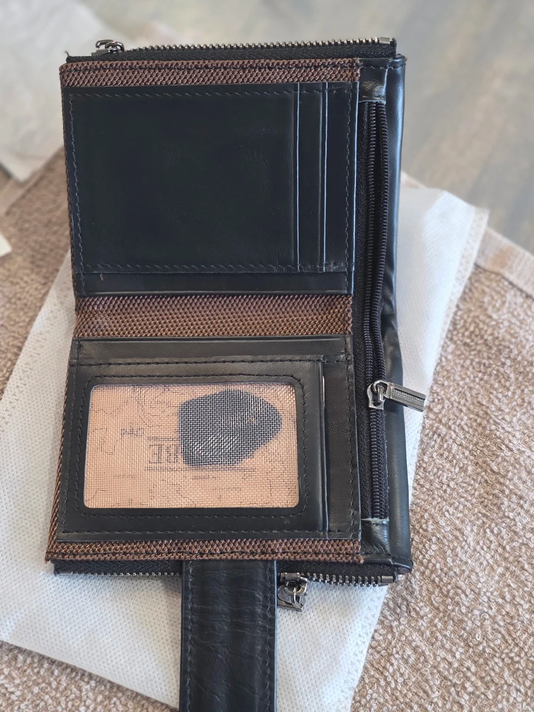 New Black Leather Wallet with Zippers.