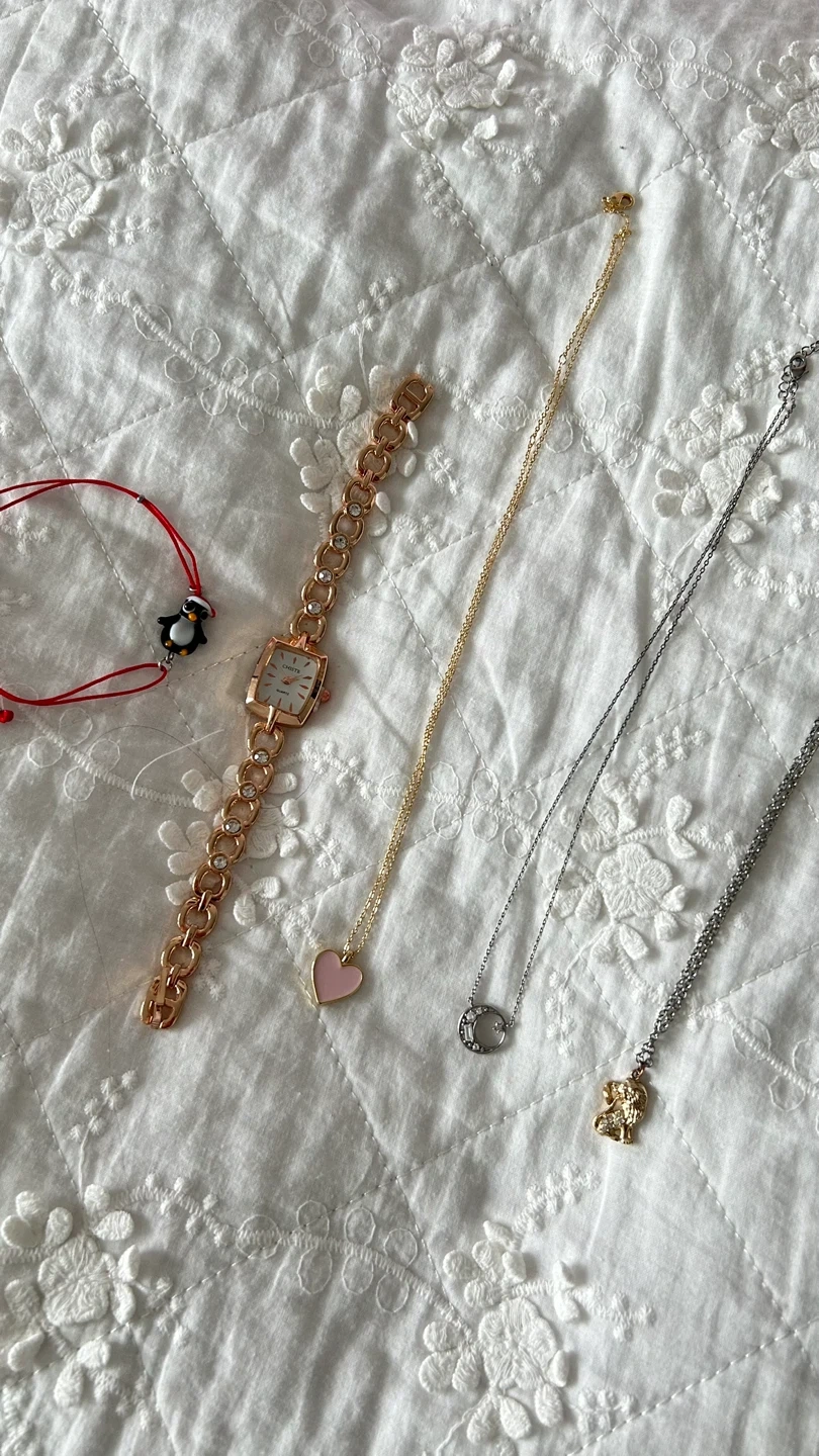 - Pink heart gold necklace