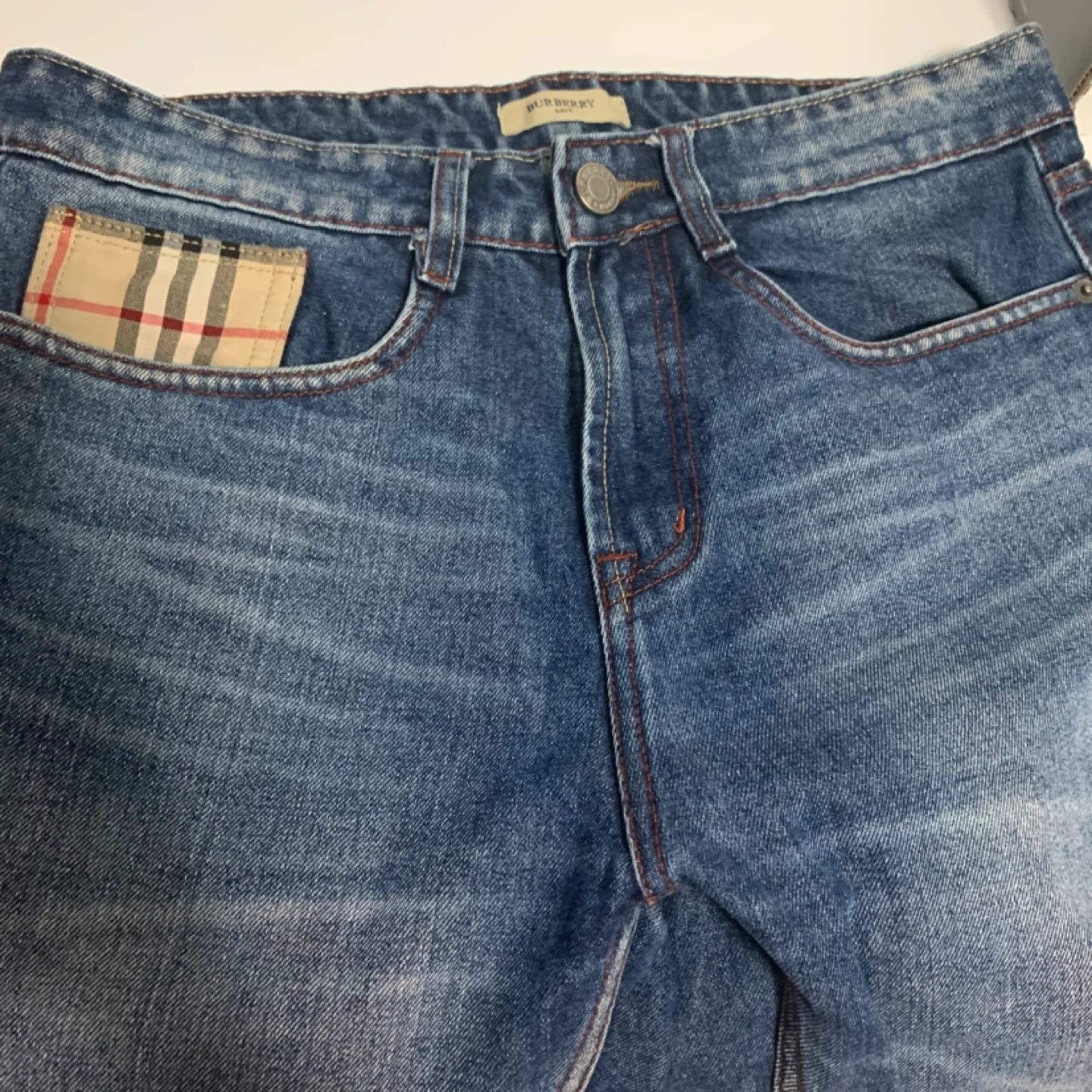 Selling a pair of Burberry Brit denim jeans in size 32! The jeans are in great condition and made of 96% cotton and 4% lycra. They have a classic denim look with the iconic Burberry plaid detail on one of the front pockets. Machine washable for easy care!