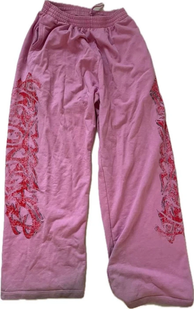These are Balenciaga 24SS Offshore Baggy Sweatpants. They are in used condition but still have lots of life left. Size S, Baggy fit, Pink with red graphics.