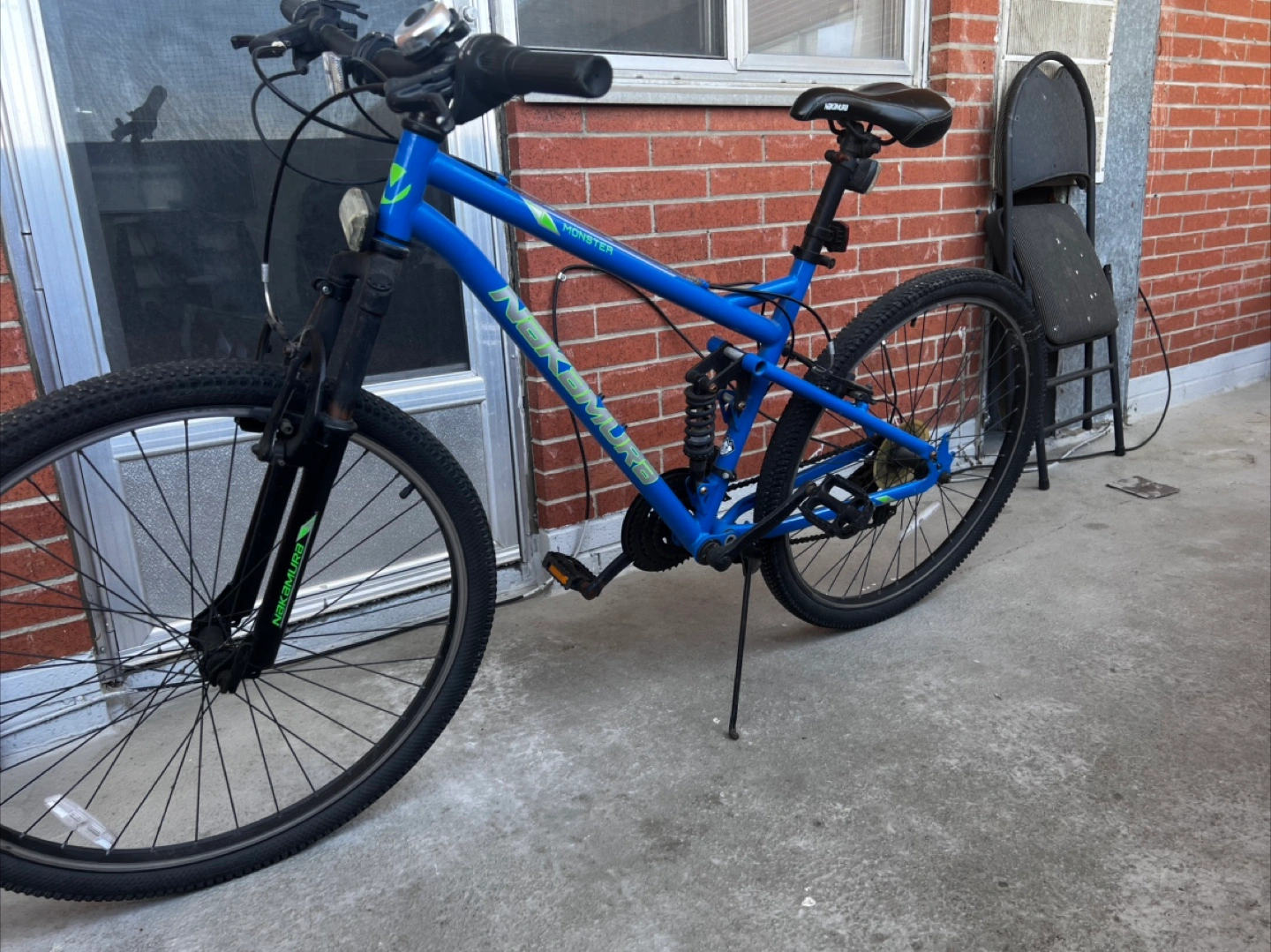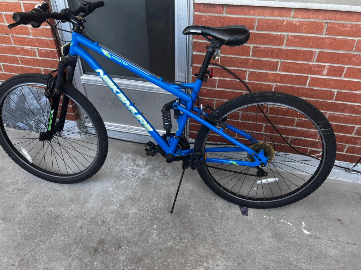 Selling a blue Nakamura Monster mountain bike. It's in good condition and ready for some off-road adventures!