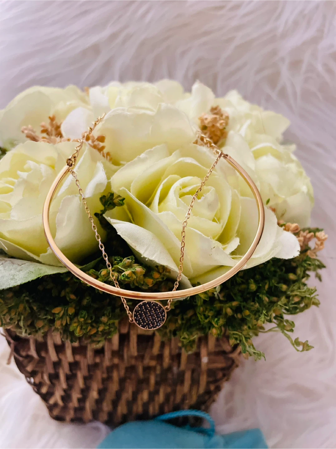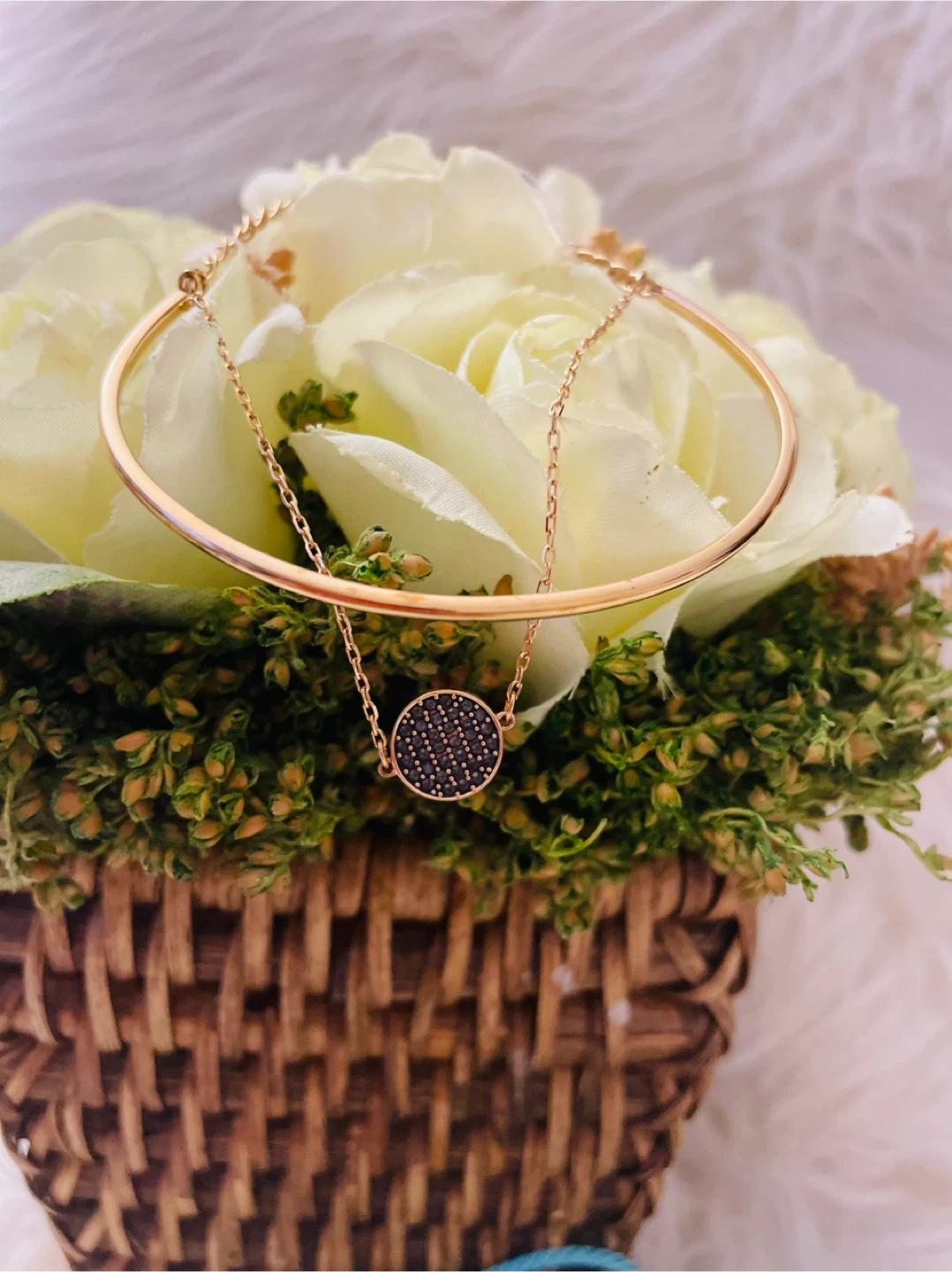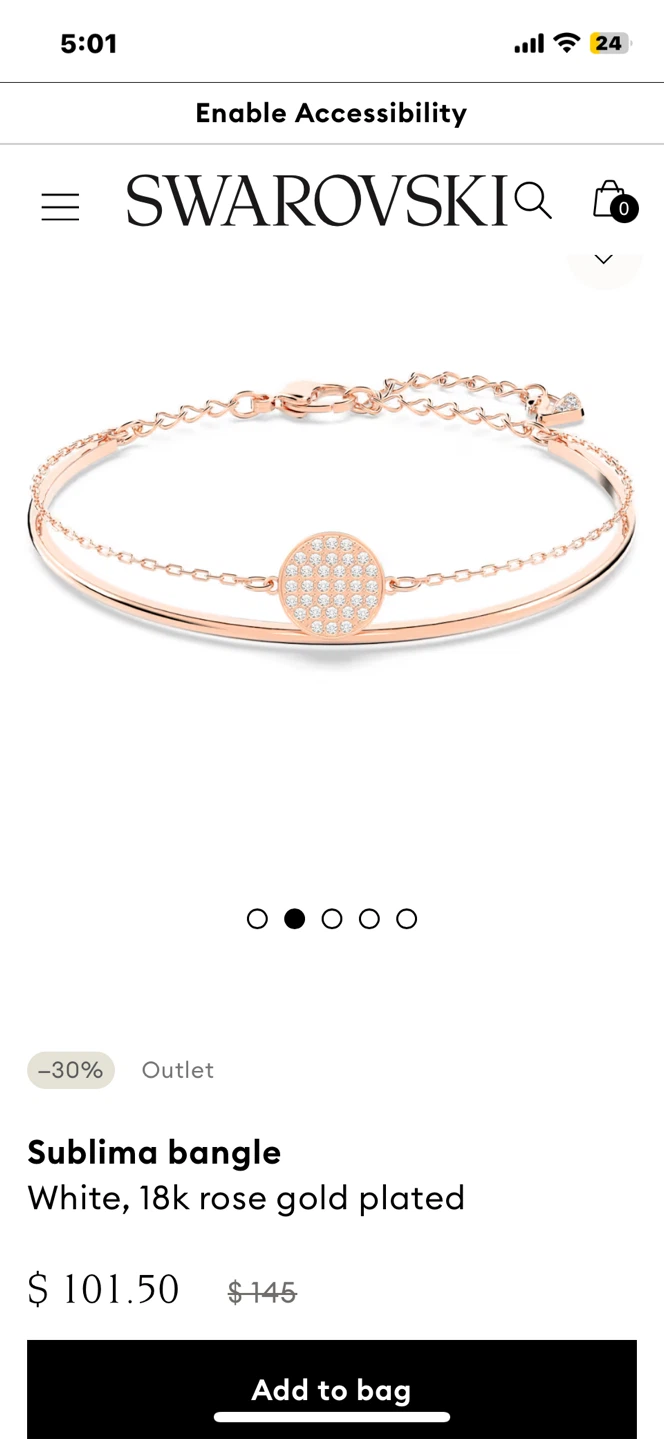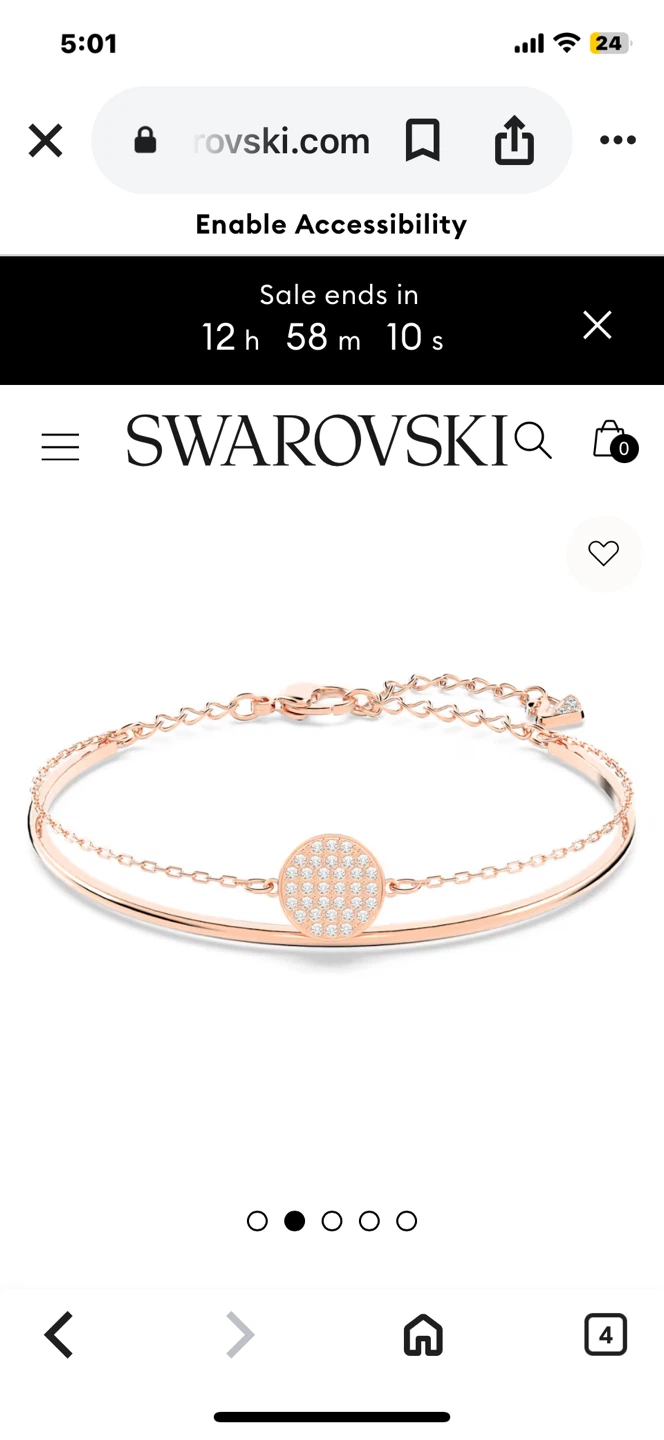This elegant Swarovski bangle features a rose gold tone finish. It has a delicate chain with a circular pendant. It's a stylish accessory for any occasion. Perfect for gifting or adding a touch of sparkle to your everyday look!