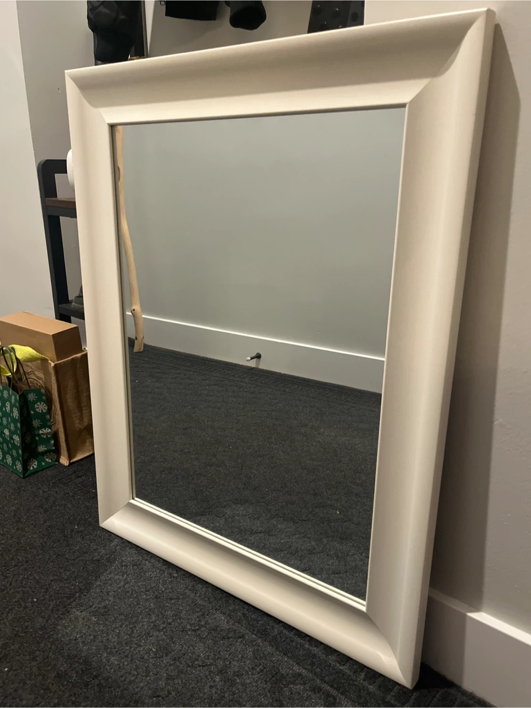 Selling a simple white framed mirror. It's in great condition and ready to brighten up your space! Perfect for an entryway, bedroom, or bathroom.