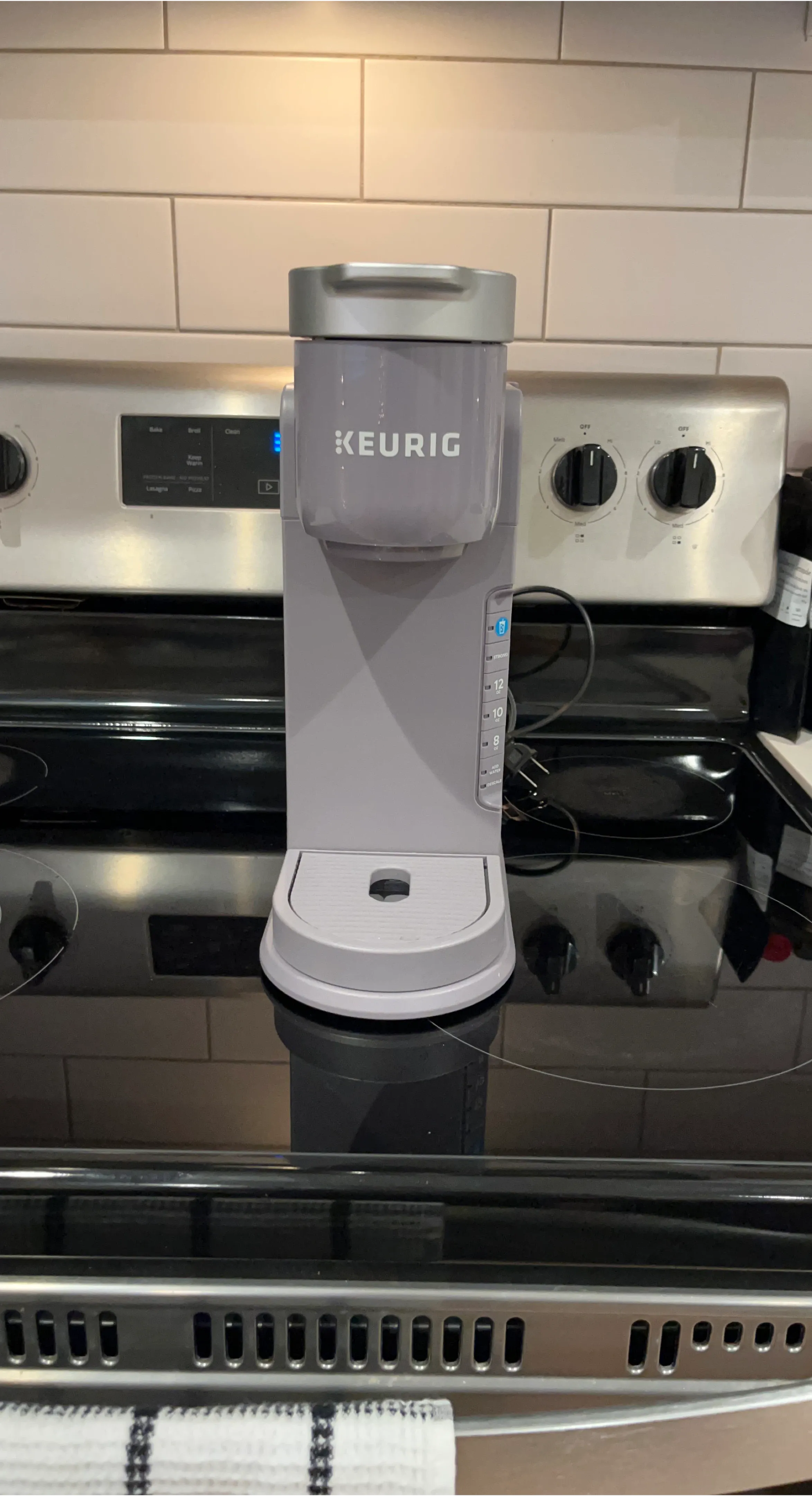 I'm selling a Keurig K-Mini single serve coffee maker in grey. It's in great condition and perfect for small spaces or anyone who just wants a quick cup of coffee in the morning. It can brew 6-12 oz cups, so it's great for any size mug!