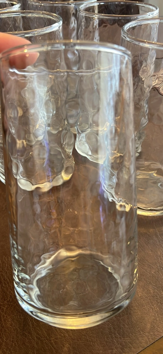 Set of 8 clear glass tumblers with a textured design.