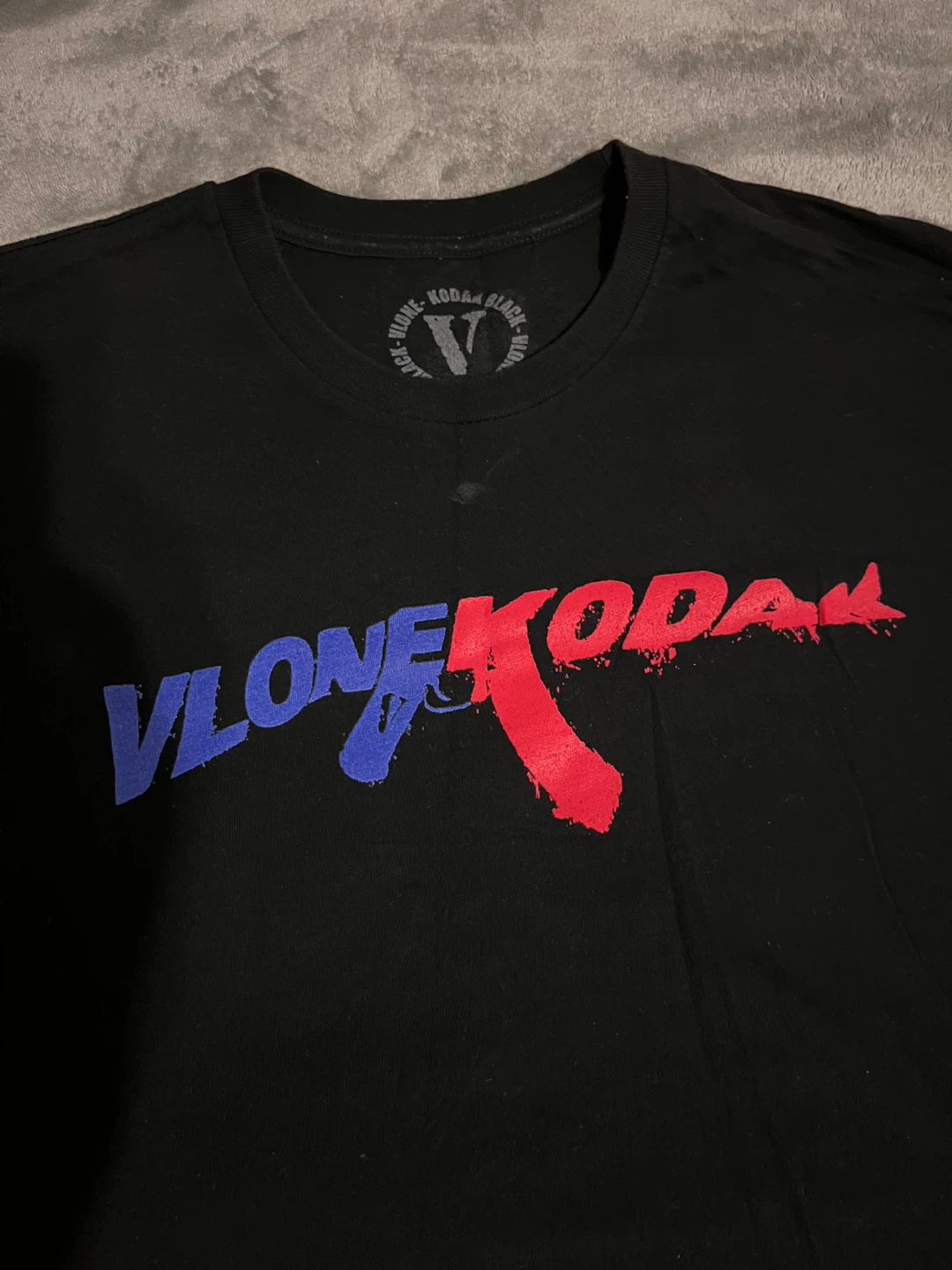 Selling a VLONE x Kodak Black T-shirt in size XL. It's a stylish piece with a unique design. This shirt is made in VLONE. "Live VLONE Die VLONE" is printed on the tag.