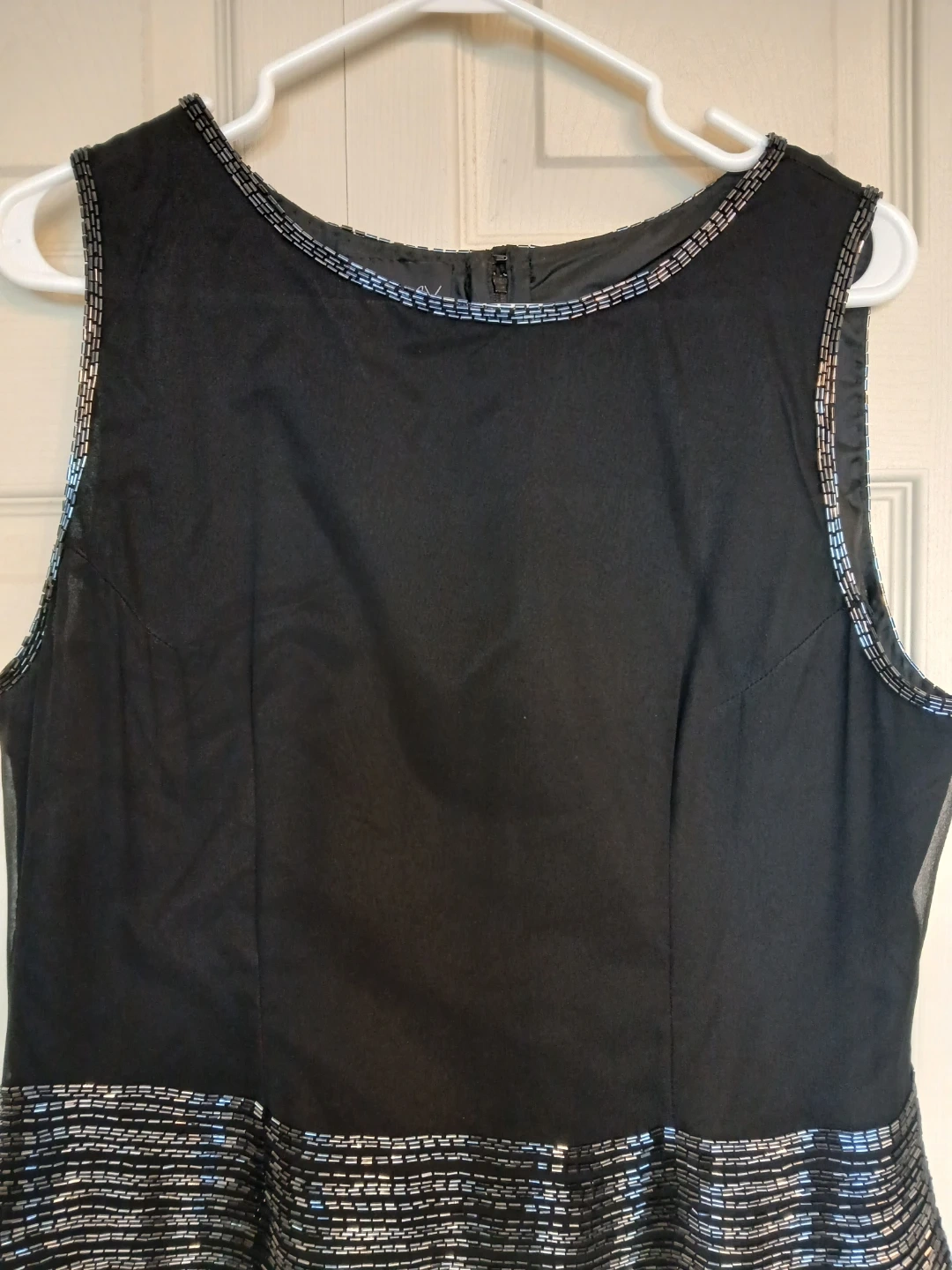 # woman women clothing clothes top blouse shirt sleeveless spring summer fall winter formal casual work office event black beads sequins size 12 large L extra large XL luxury designer name brand high end evening wear vintage 70s 80s glamorous beadwork