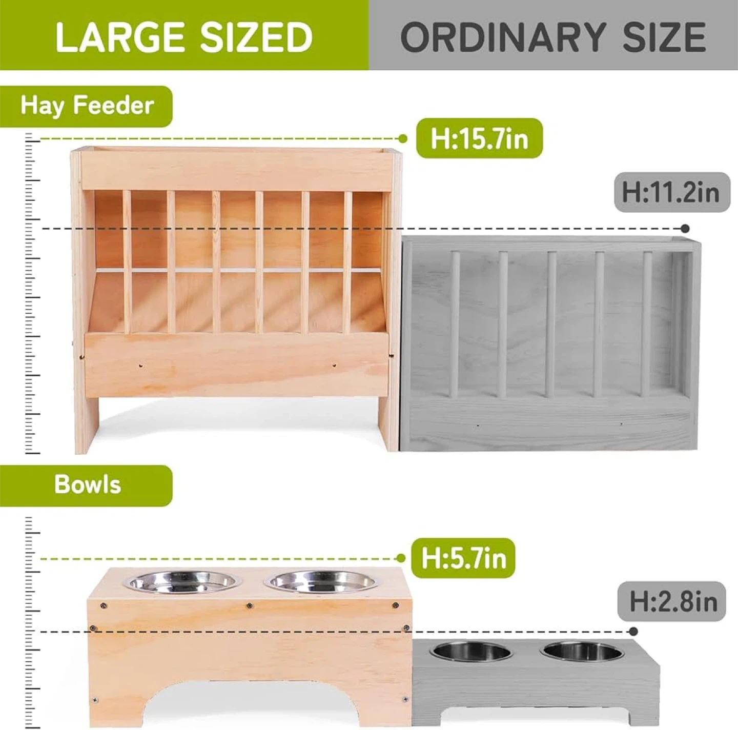 3 in 1 Extra Large Rabbit Hay Feeder with Litter Box, Wooden Bunny Toilet, for Large and Medium-Sized Dwarf Rabbit, Guinea Pig, Chinchillas, Hamster, Ferret, Other Animals