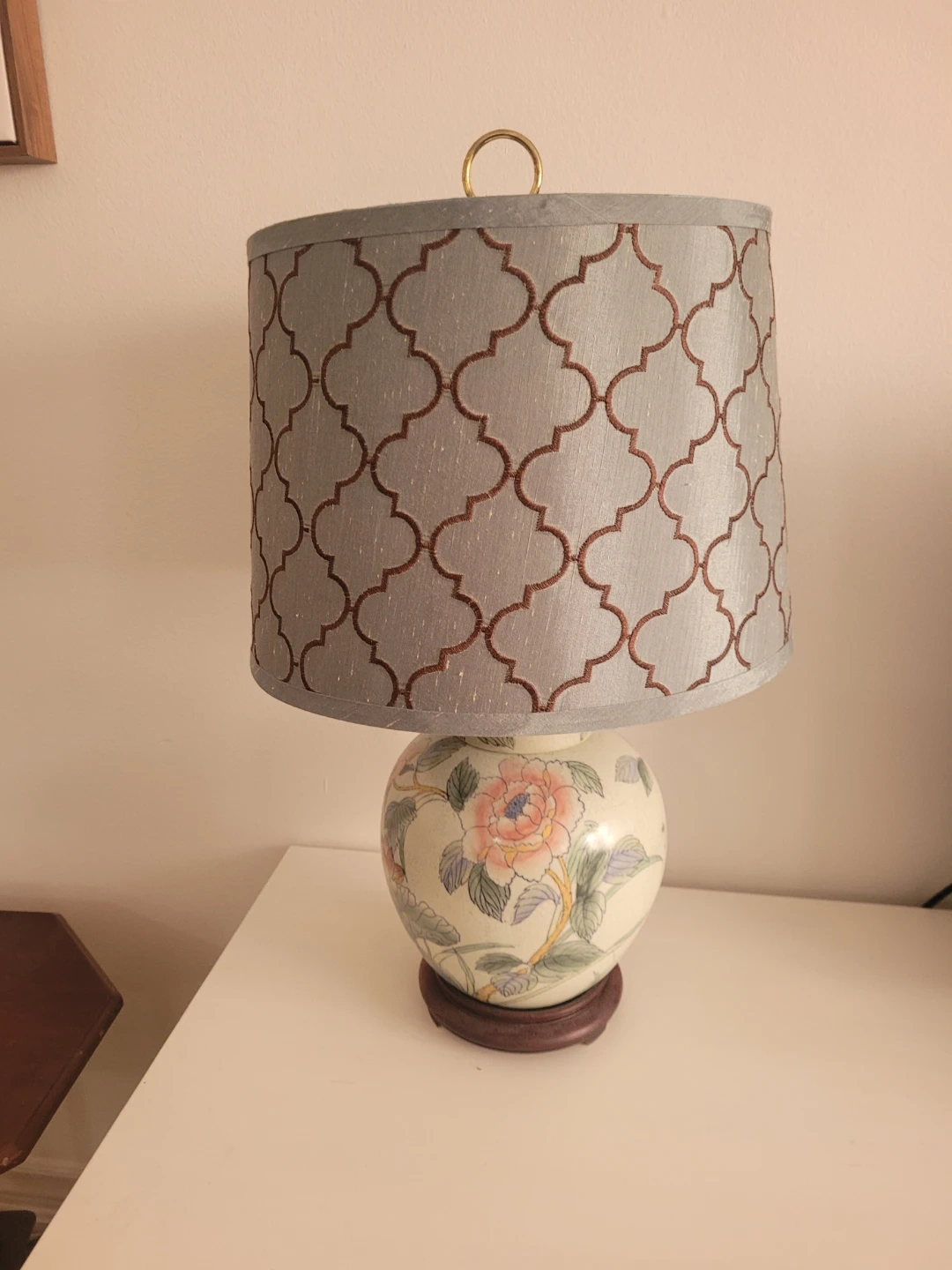 Table Lamp with Floral Ceramic Base and Decorative Shade
