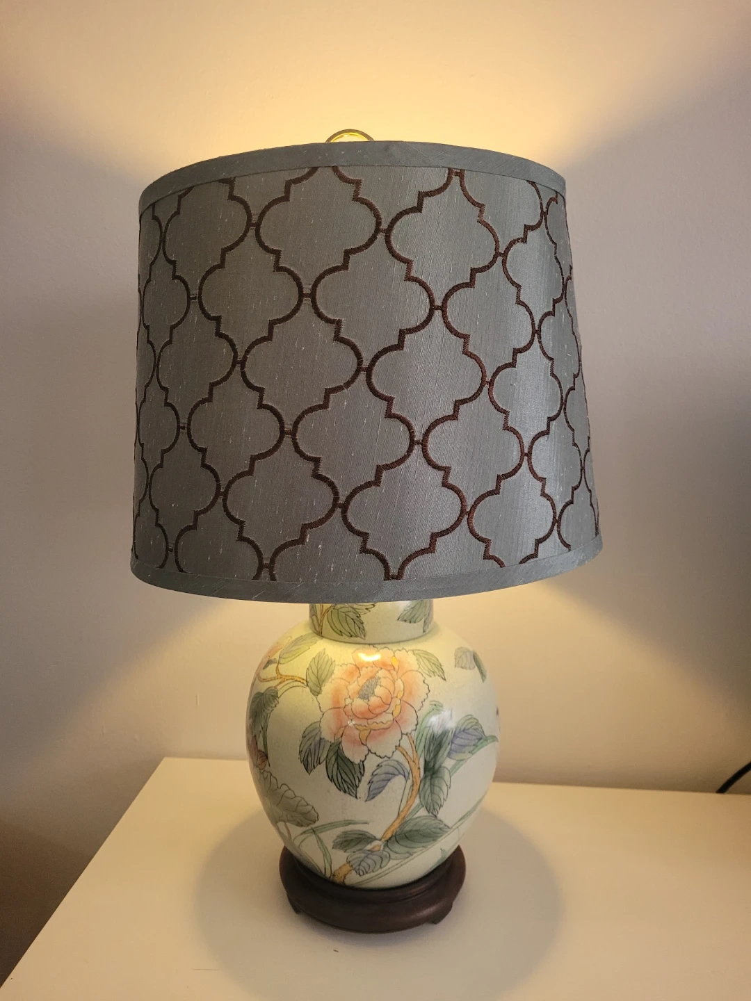Table Lamp with Floral Ceramic Base and Decorative Shade