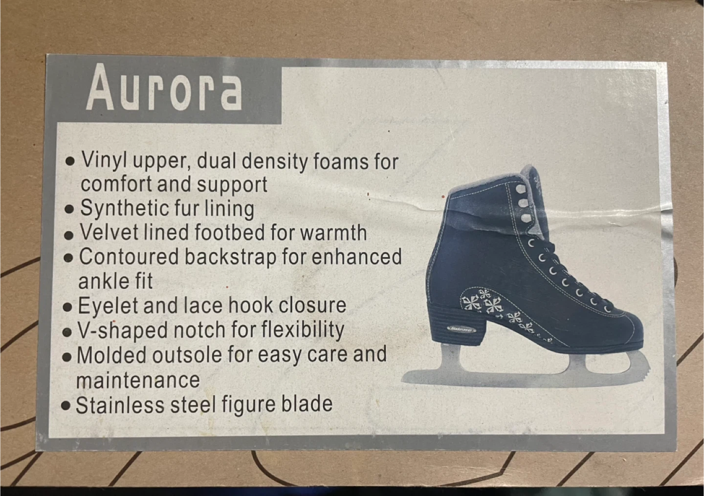 ((ORIGINALLY $165)) Used ONCE. These Bladerunner Aurora skates feature a vinyl upper with synthetic fur lining and a velvet lined footbed. They have an eyelet and lace hook closure and a stainless steel figure blade. Comfortable for recreational skating.