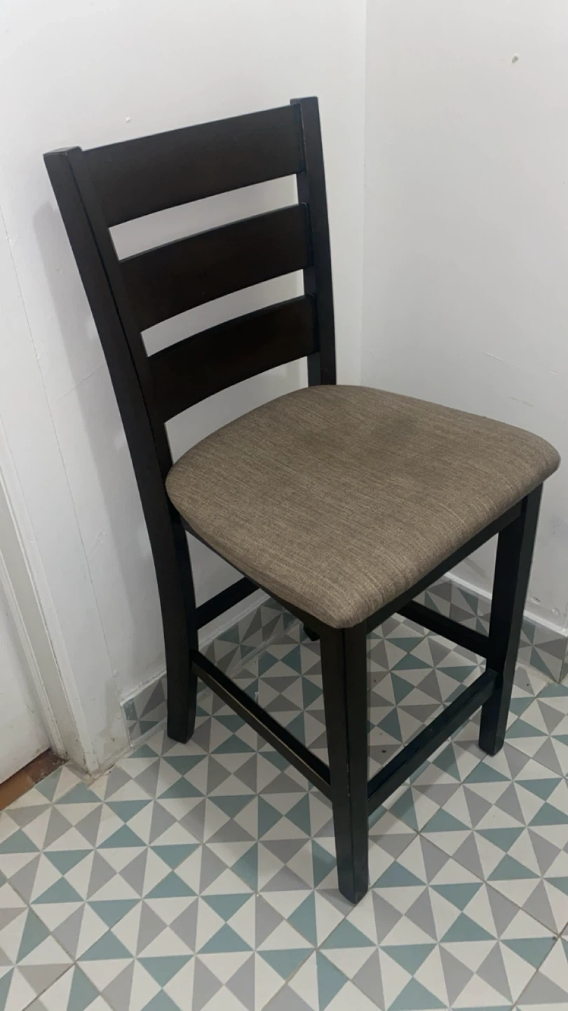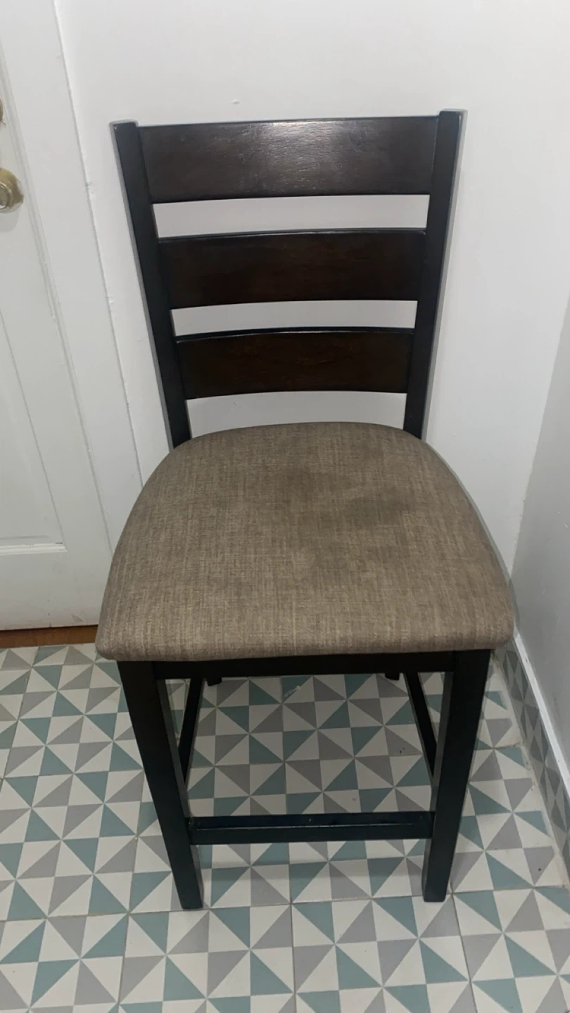 Dark Wood Counter Stool with Upholstered Seat
