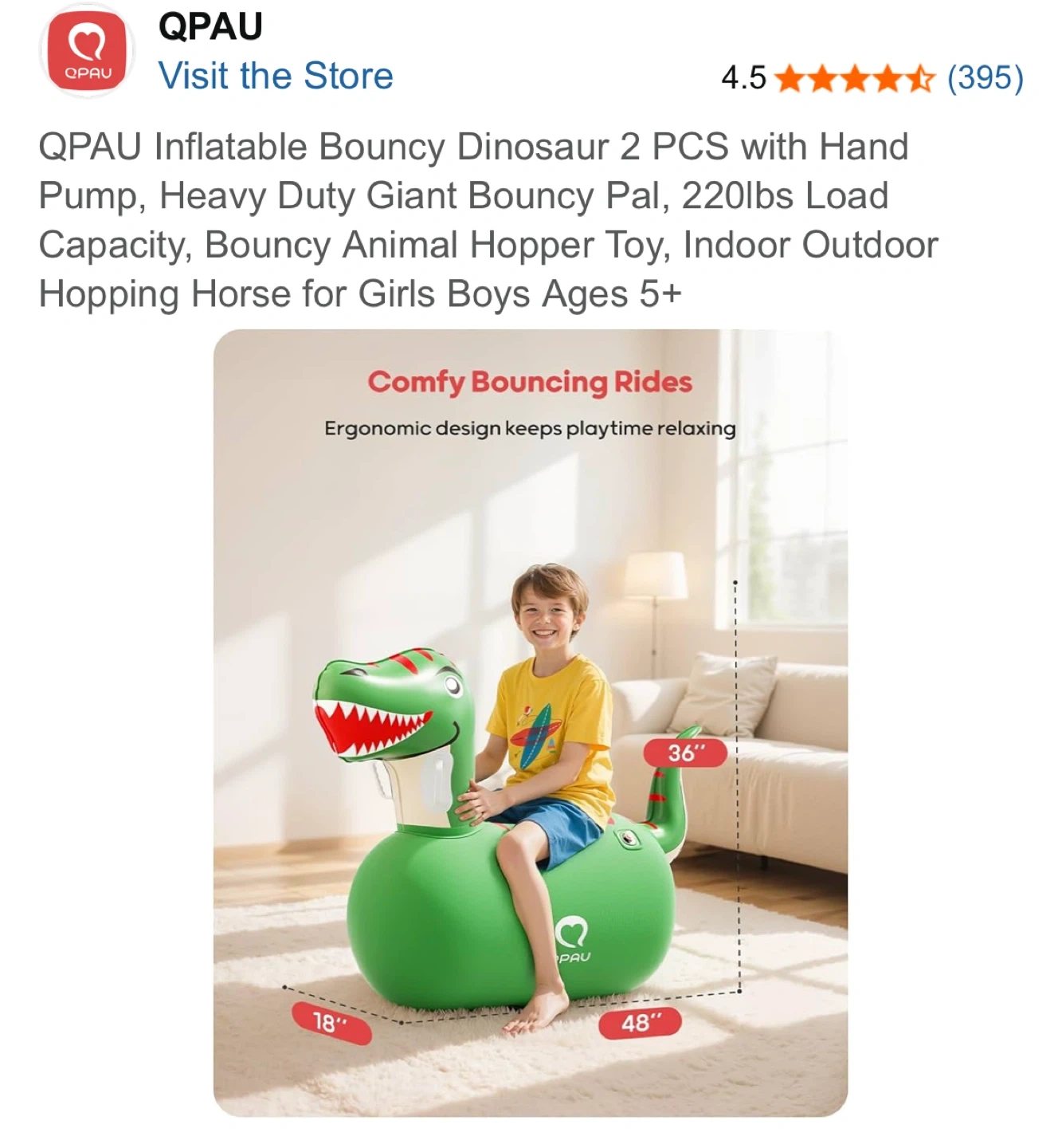 Show allQPAU Inflatable Bouncy Dinosaur - Ages 5+