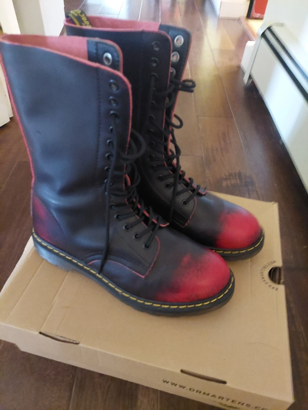 Dr. Martens 1B99 Black & Red Leather Boots. Size 9 men/11 W