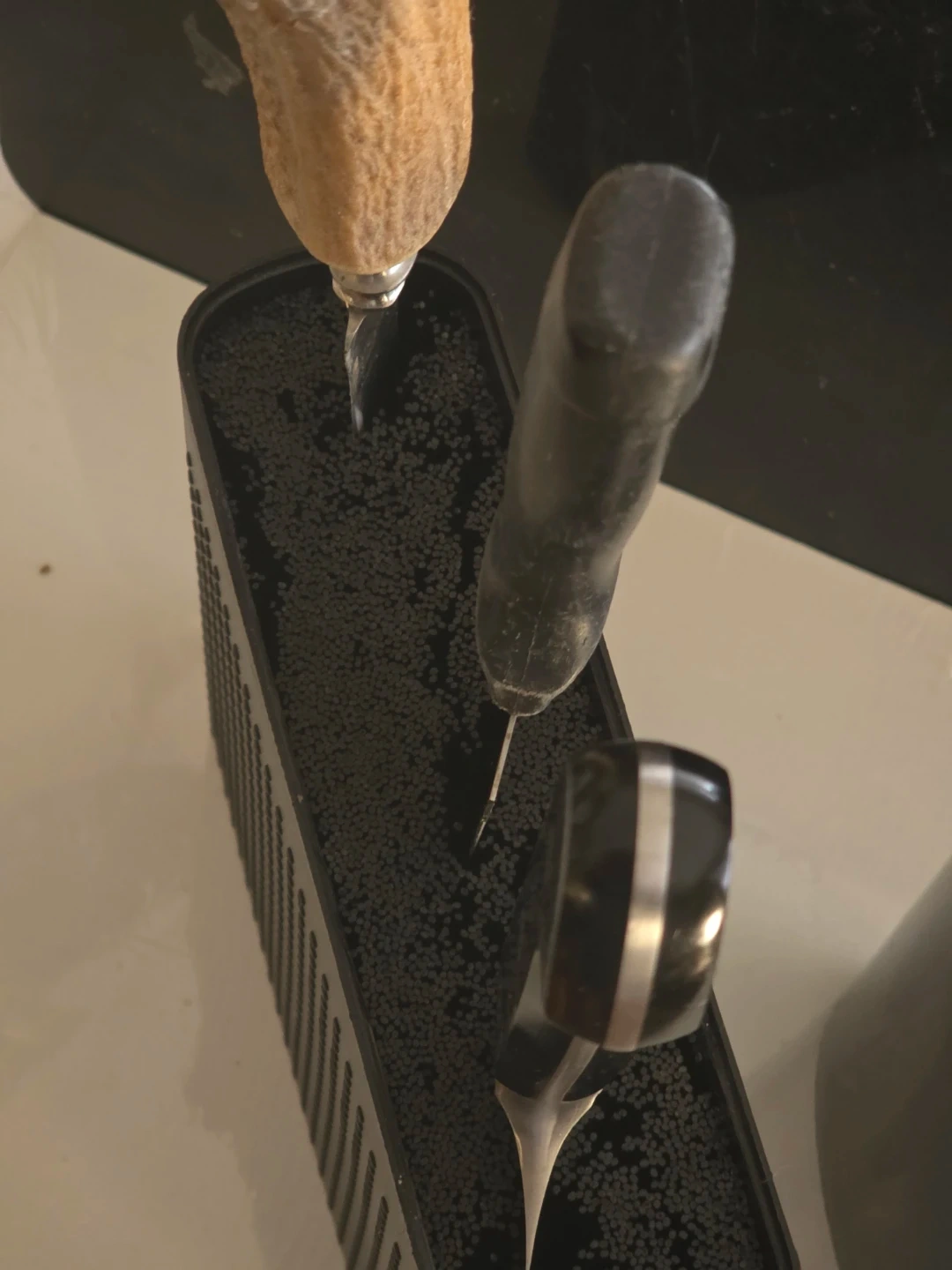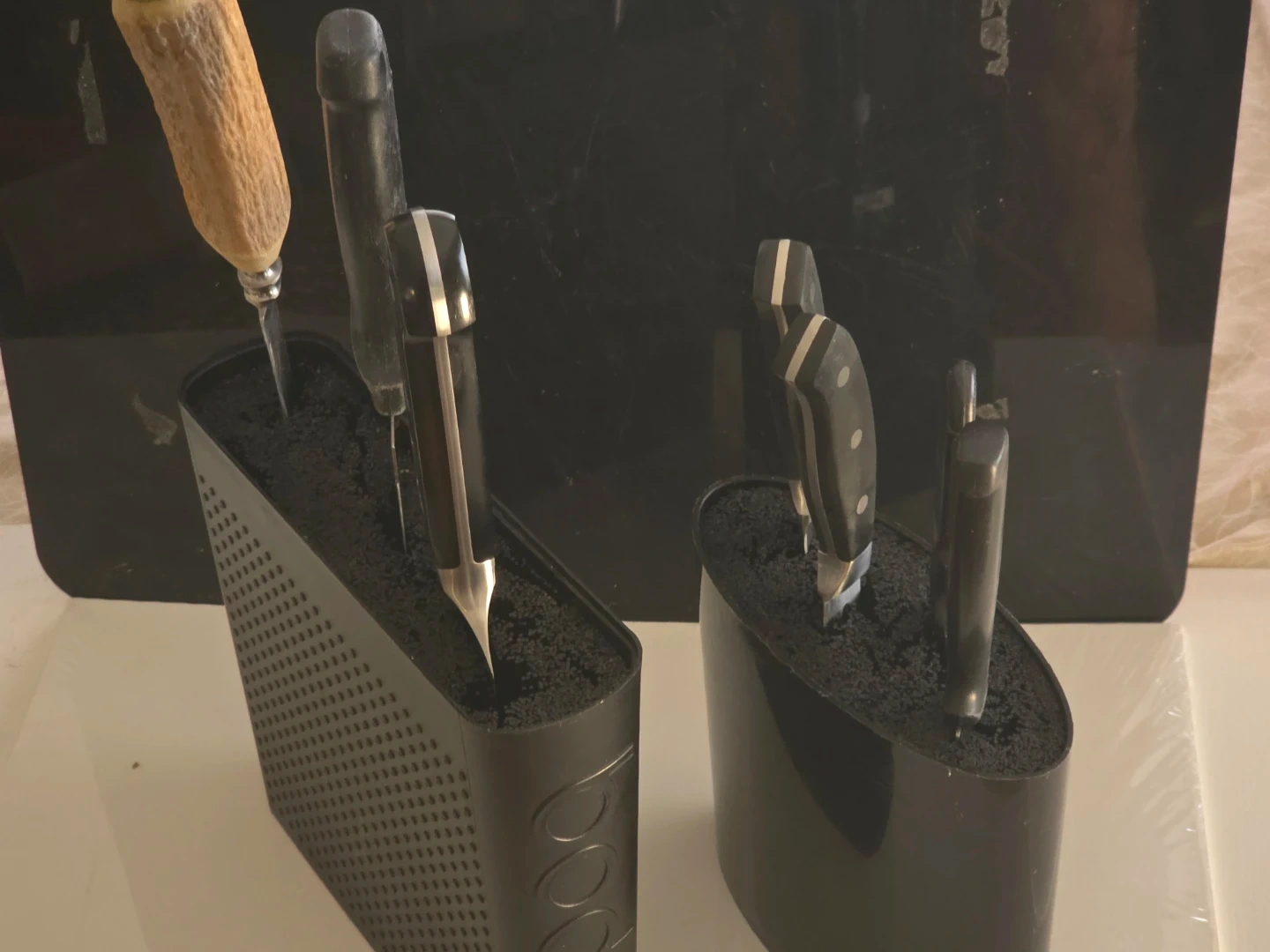 Universal Design: Comprised of fine plastic rods, this block securely holds various knives of different sizes and shapes.