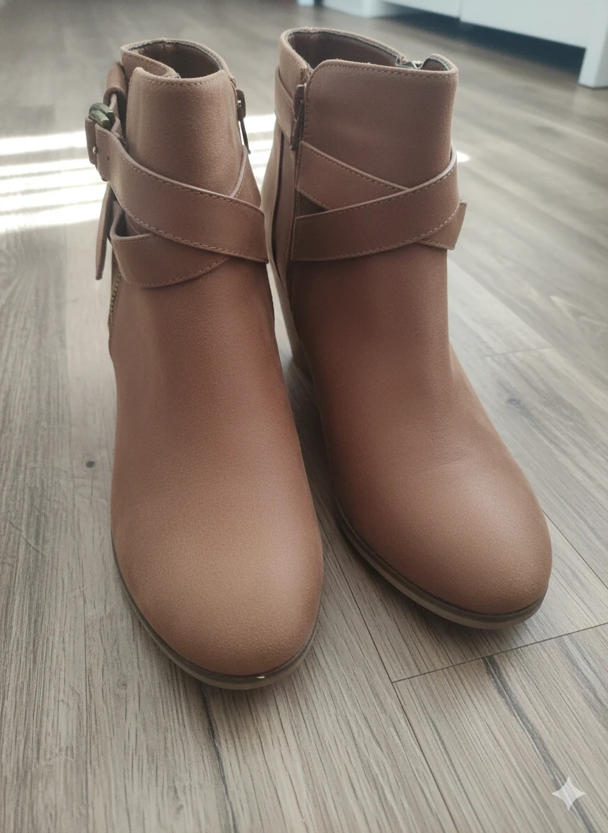 Cute brown ankle boots in Brand New condition! They feature a stylish buckle detail and a comfortable heel height. Perfect for adding a touch of style to any outfit. Size 12w
