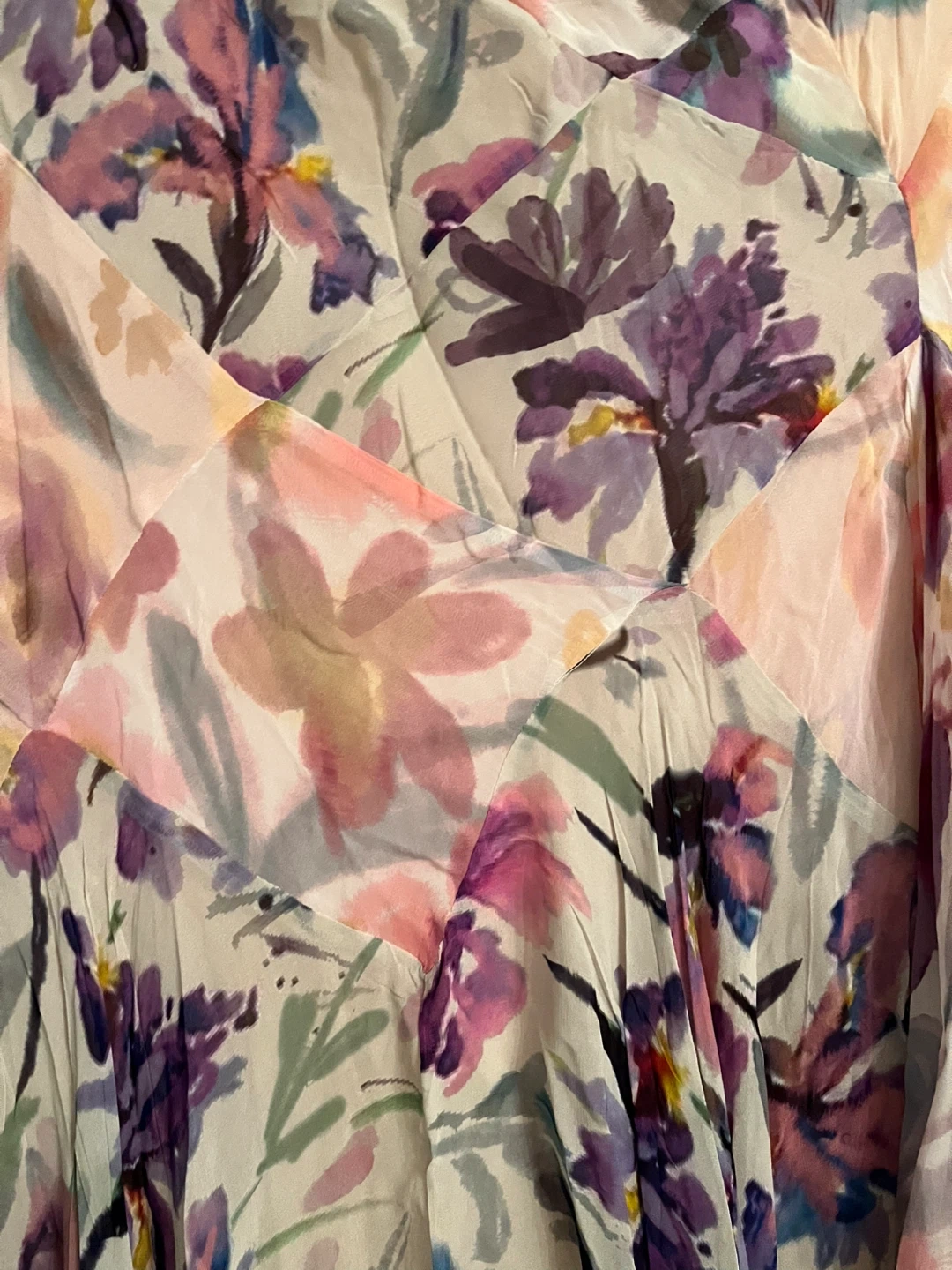 This flowing midi skirt showcases a vibrant watercolour floral print.