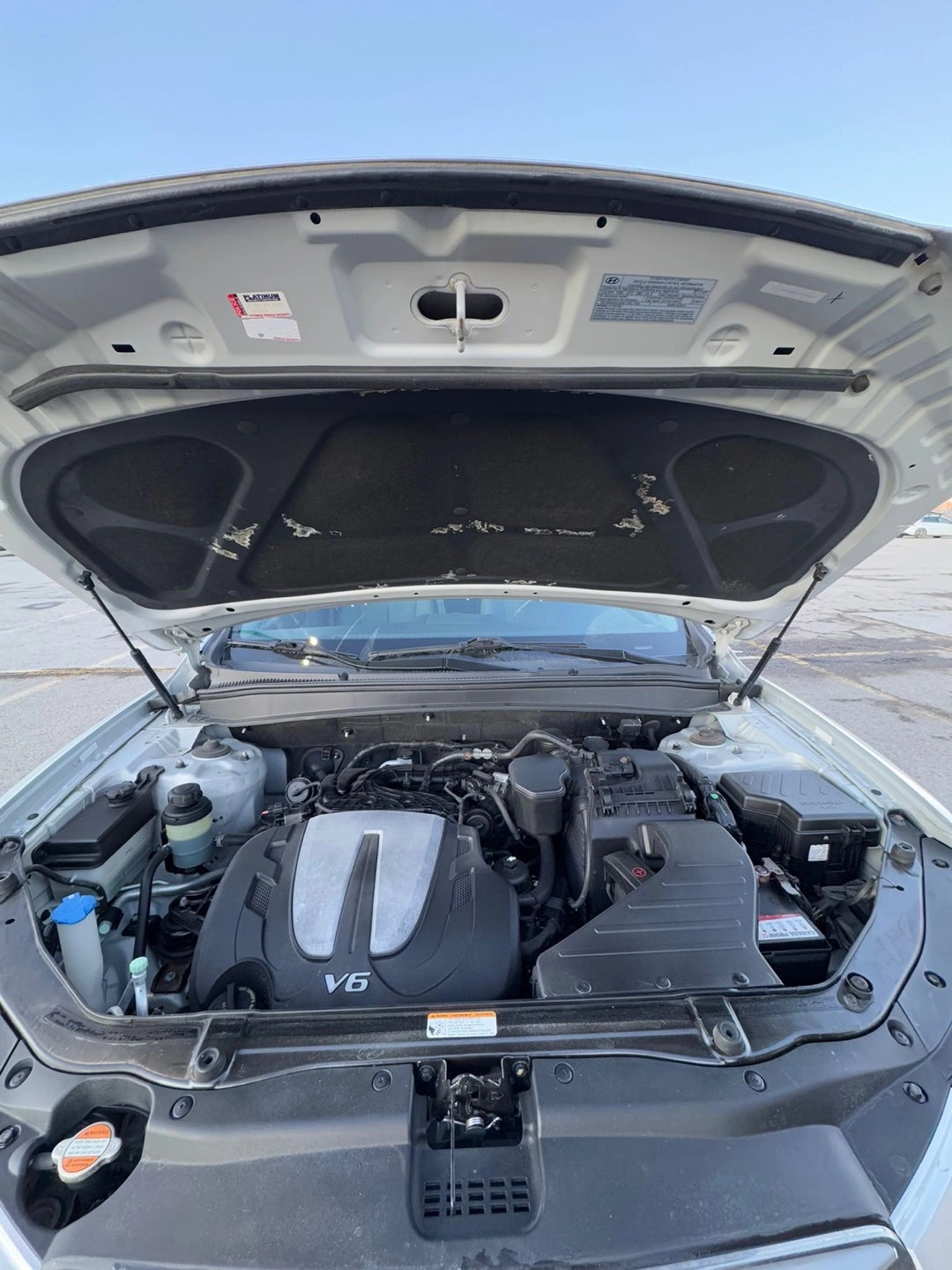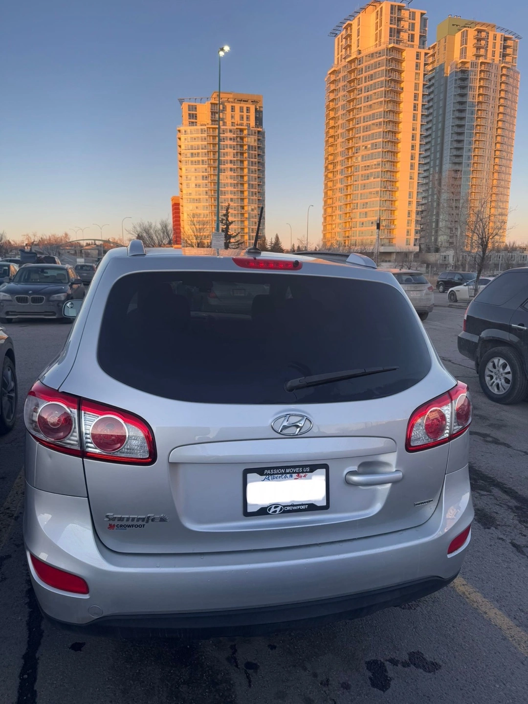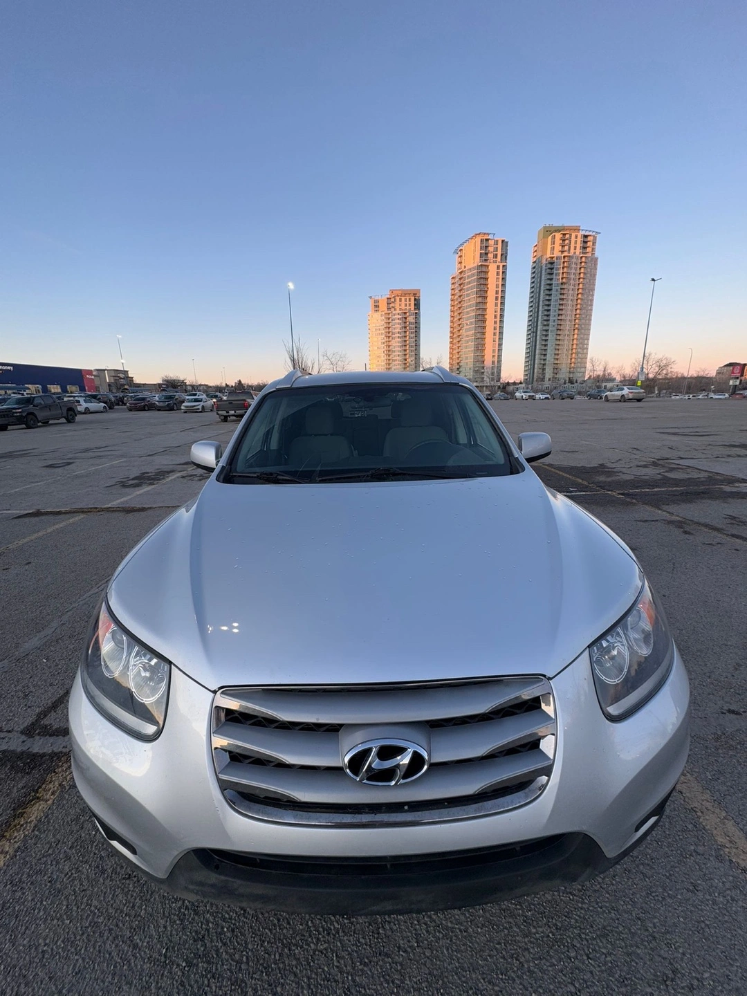 Silver Hyundai Santa Fe . Spacious SUV, good condition. Roomy interior. Clean trunk. Reliable vehicle.