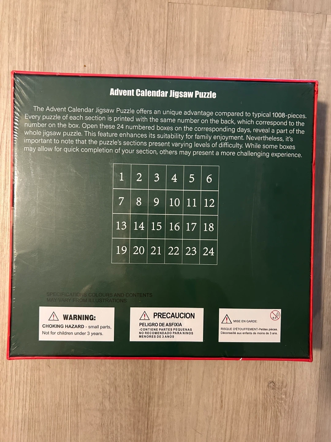 Selling a Disney Advent Calendar jigsaw puzzle! It has 1008 pieces and includes a poster. This puzzle offers a unique advantage compared to typical 1008-piece puzzles, as each section is printed with the same number on the back, corresponding to the number on the box. Open these 24 numbered boxes on the corresponding days to reveal a part of the whole jigsaw puzzle. This feature enhances its suitability for family enjoyment