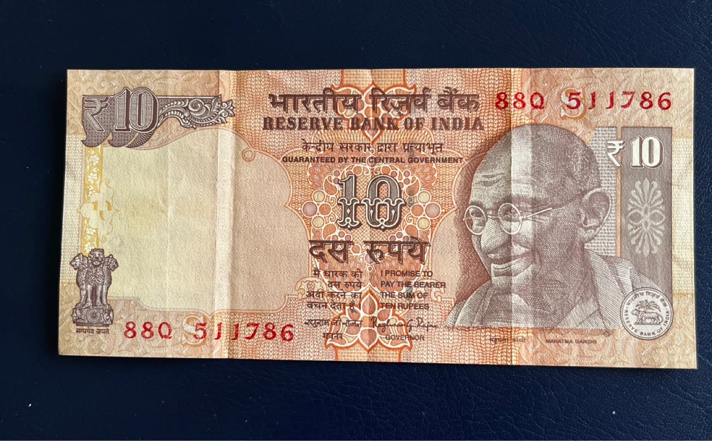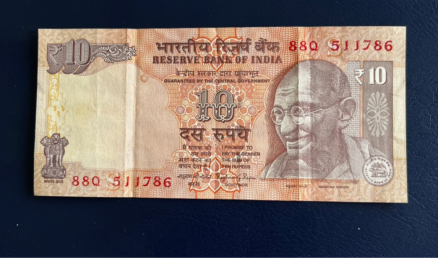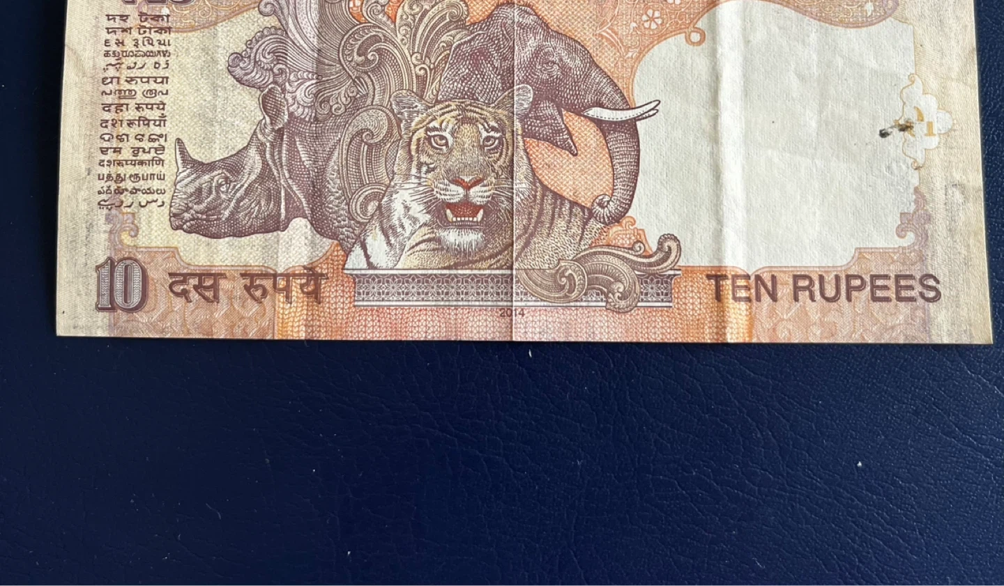 Vintage holy number This is a 10 Rupee banknote from the Reserve Bank of India. It features Mahatma Gandhi on the obverse and various animals including a tiger and elephant on the reverse. It's a collectible item for currency enthusiasts.