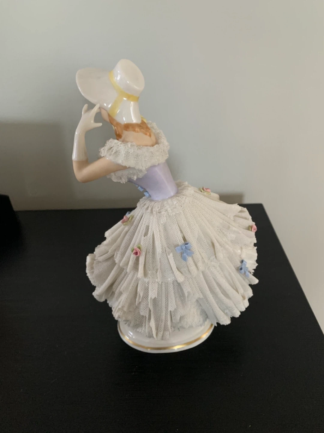 This is a beautiful vintage porcelain figurine of a lady wearing a hat and a lovely dress. It would make a great addition to any collection!