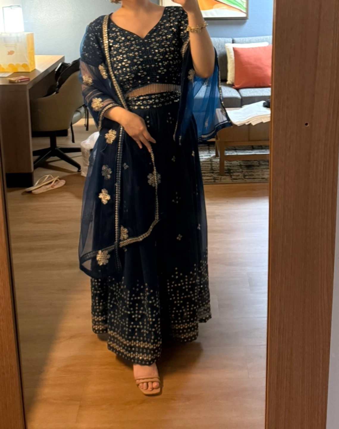 Indian Wedding Blue Embroidered Two-Piece Outfit with Dupatta
