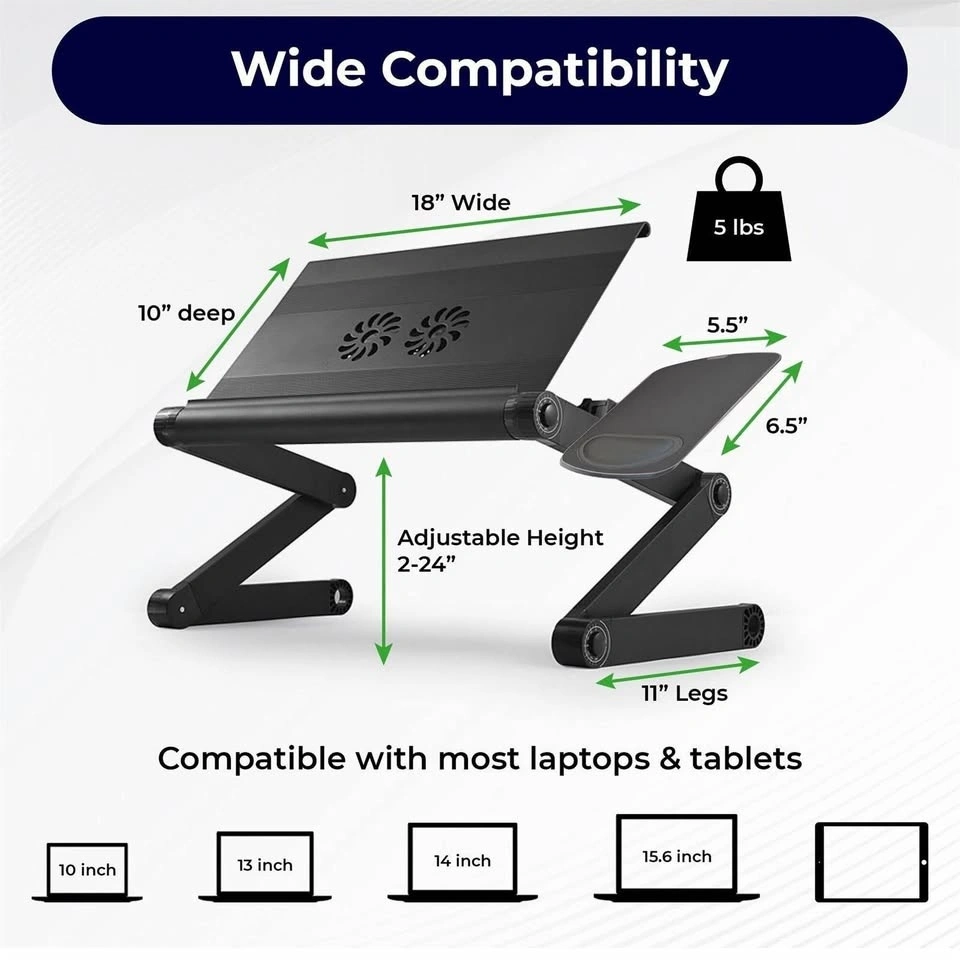 Transform your laptop experience with this foldable laptop desk. Use it anywhere – in bed, on the couch, at your desk, or even standing. This adjustable laptop stand and lap desk will elevate your computing experience. It holds your computer hands-free and includes a wide panel with an easily removable mouse pad. This portable lap desk creates an ergonomic workstation.