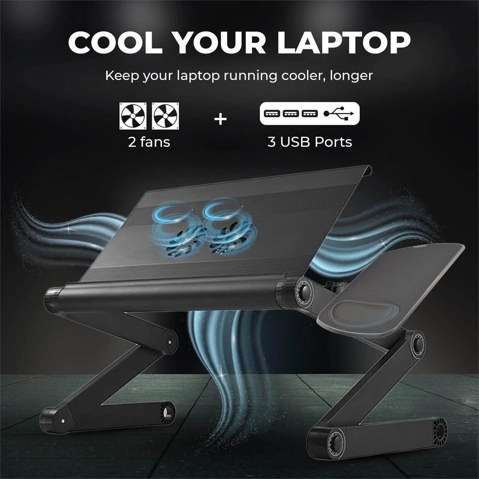 Transform your laptop experience with this foldable laptop desk. Use it anywhere – in bed, on the couch, at your desk, or even standing. This adjustable laptop stand and lap desk will elevate your computing experience. It holds your computer hands-free and includes a wide panel with an easily removable mouse pad. This portable lap desk creates an ergonomic workstation.