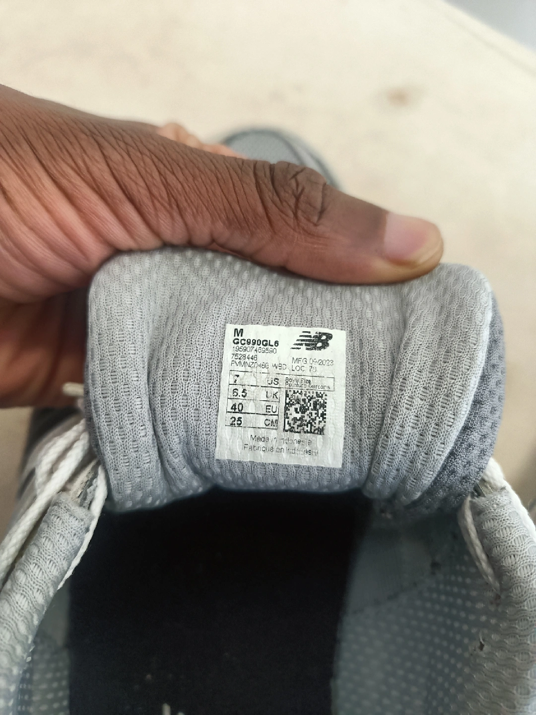 Selling a pair of New Balance 990v6 sneakers! They are a stylish gray color and in US size 7. The manufacturing date is 2023 March 09