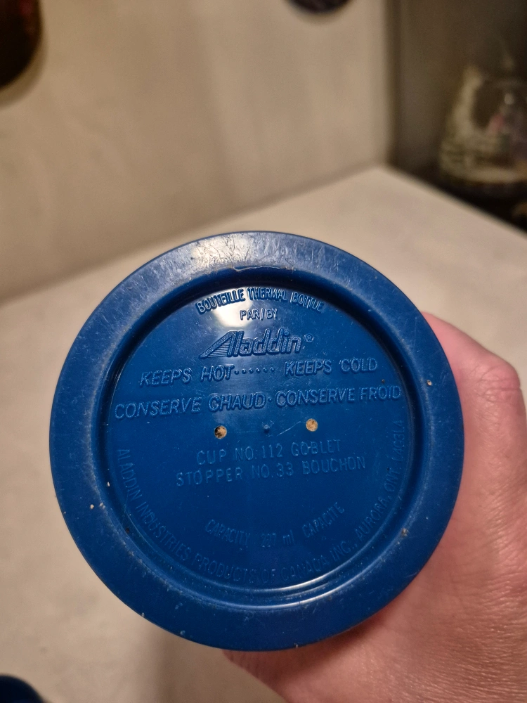 Vintage Aladdin thermal bottle featuring Raggedy Ann and Andy characters! It's blue and in good condition. Perfect for keeping your drinks hot or cold on the go