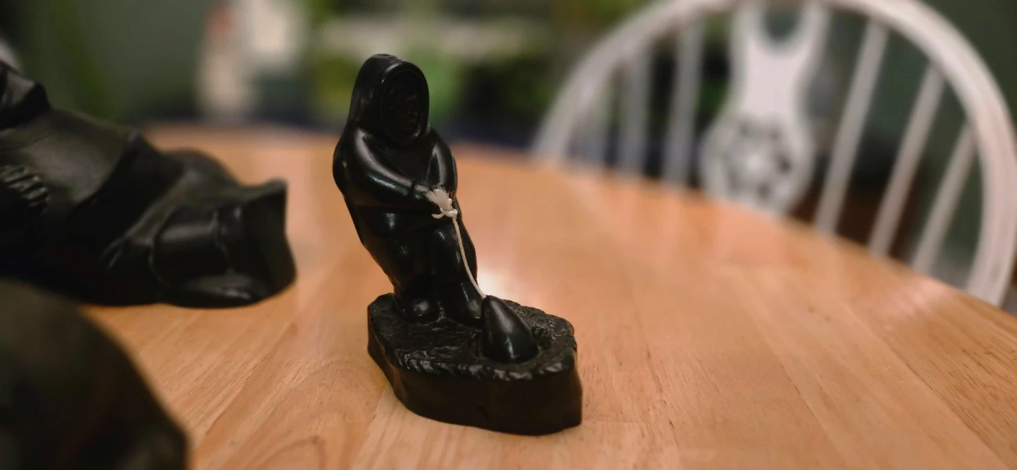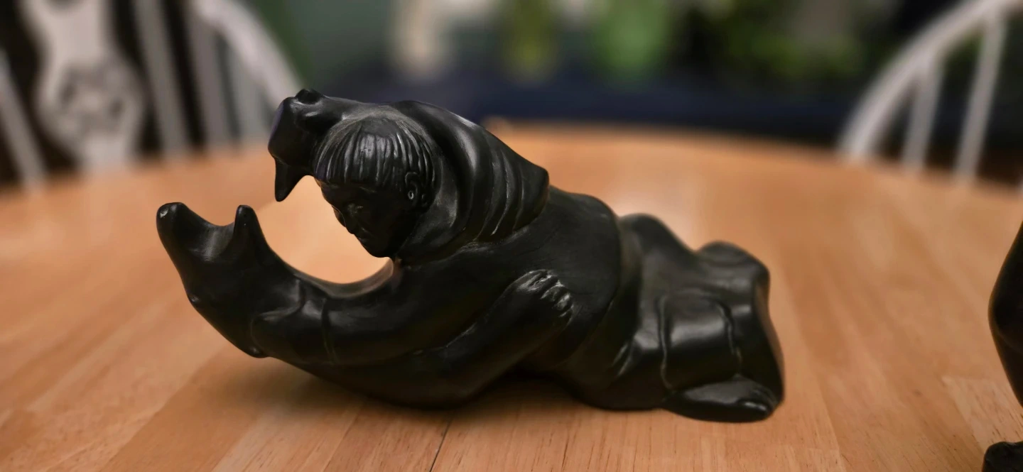 The man pulling the seal from the ice is made in Vancouver by Boma.