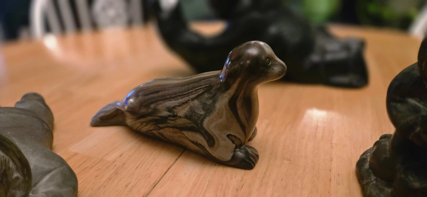 The man pulling the seal from the ice is made in Vancouver by Boma.