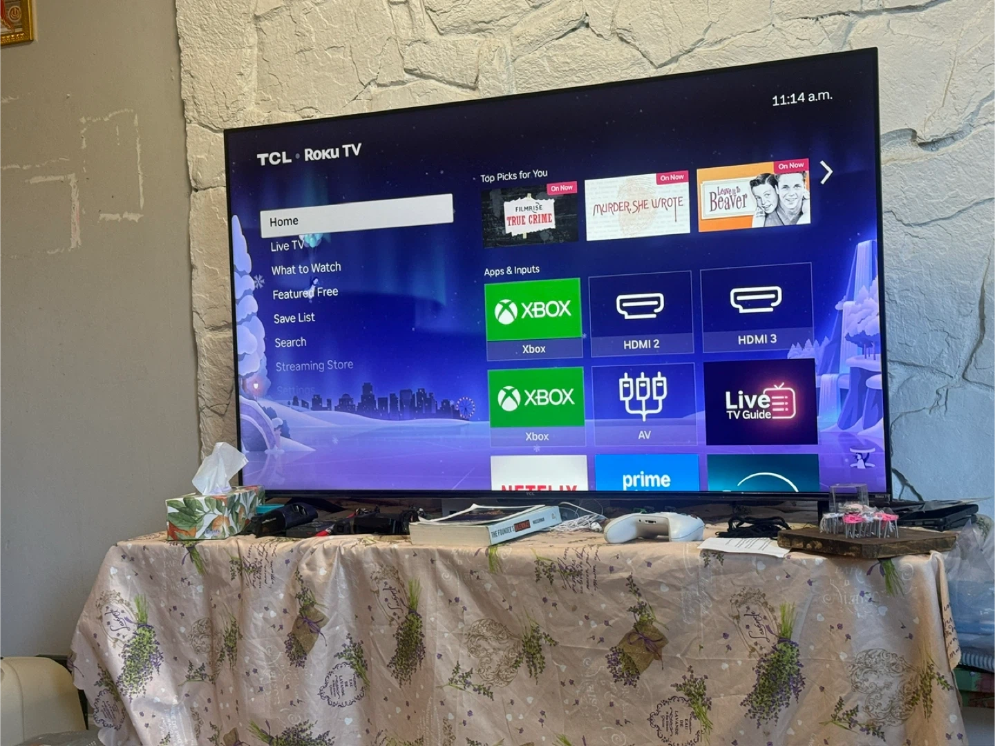 This TCL Roku TV is a smart television with built-in streaming capabilities. It offers multiple HDMI inputs for connecting external devices. The TV's interface provides access to live TV, streaming stores, and various apps. Used for almost 3 years. Everything perfectly working.