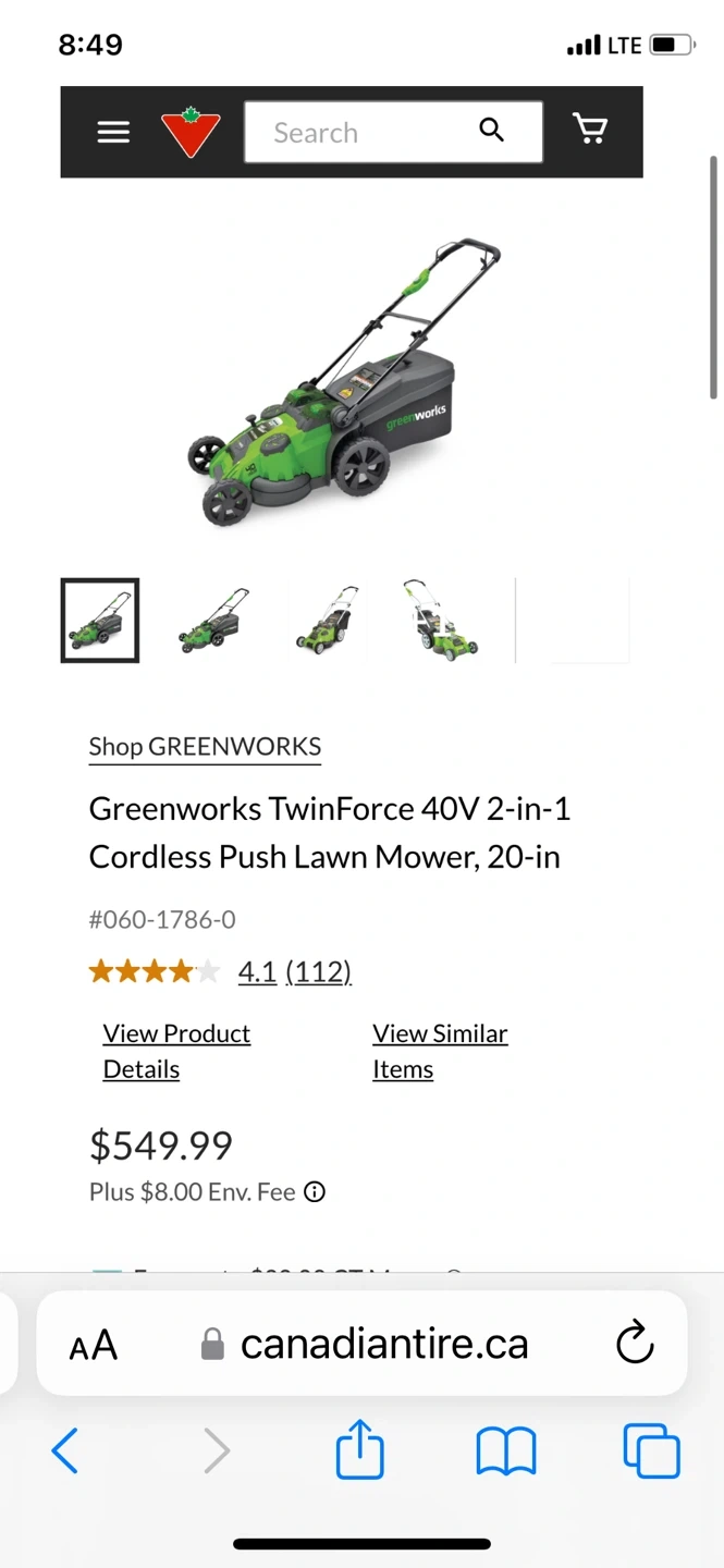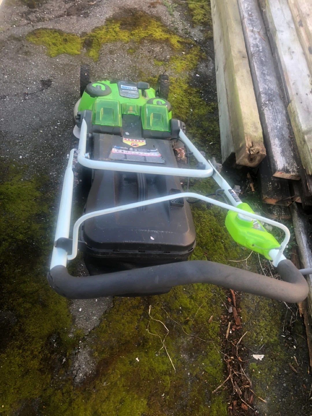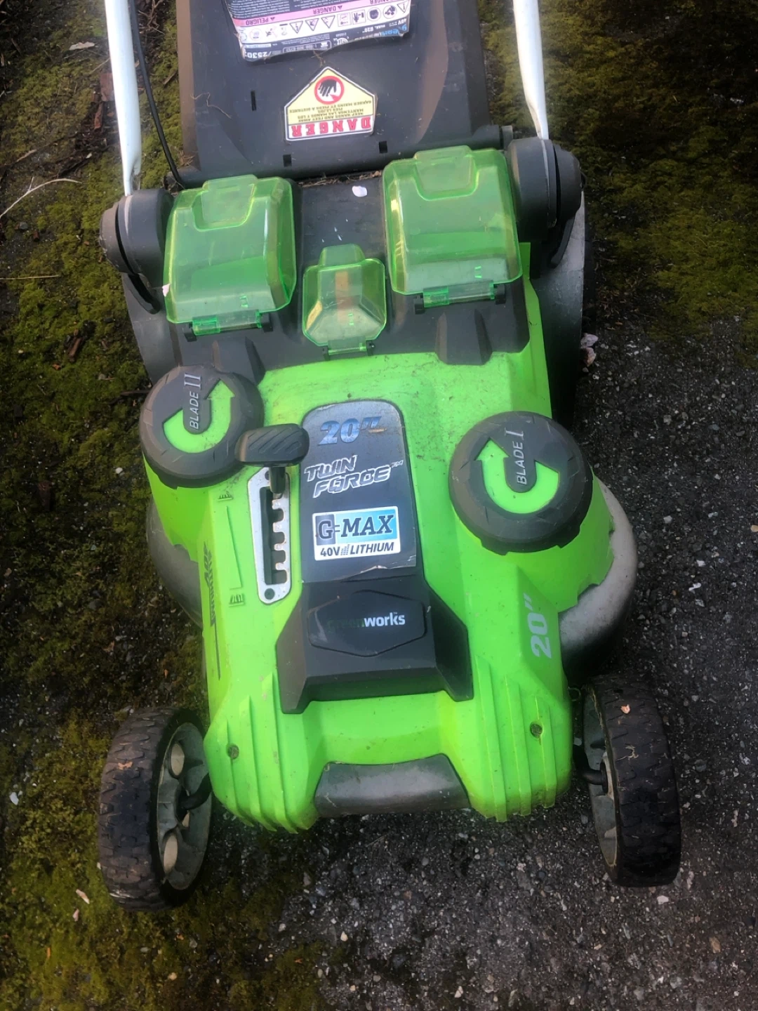 Greenworks 20-inch cordless push lawn mower. Battery powered and electric.