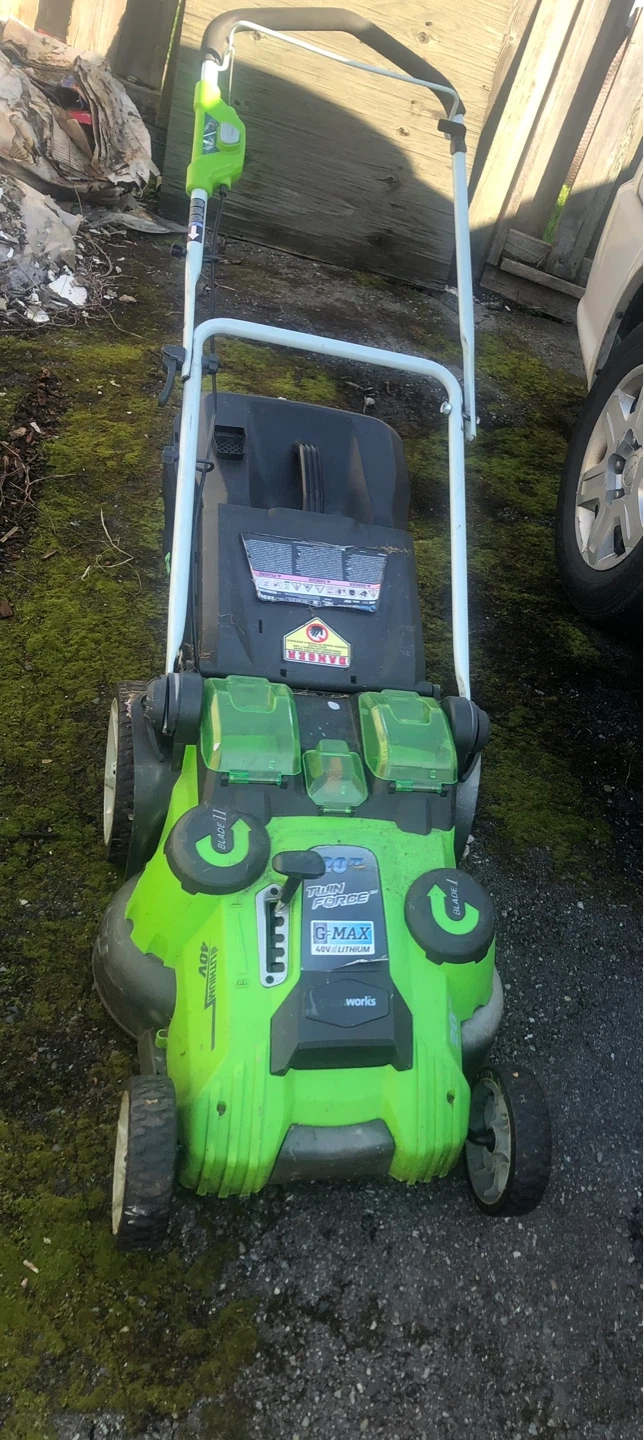 Greenworks 20-inch cordless push lawn mower. Battery powered and electric.