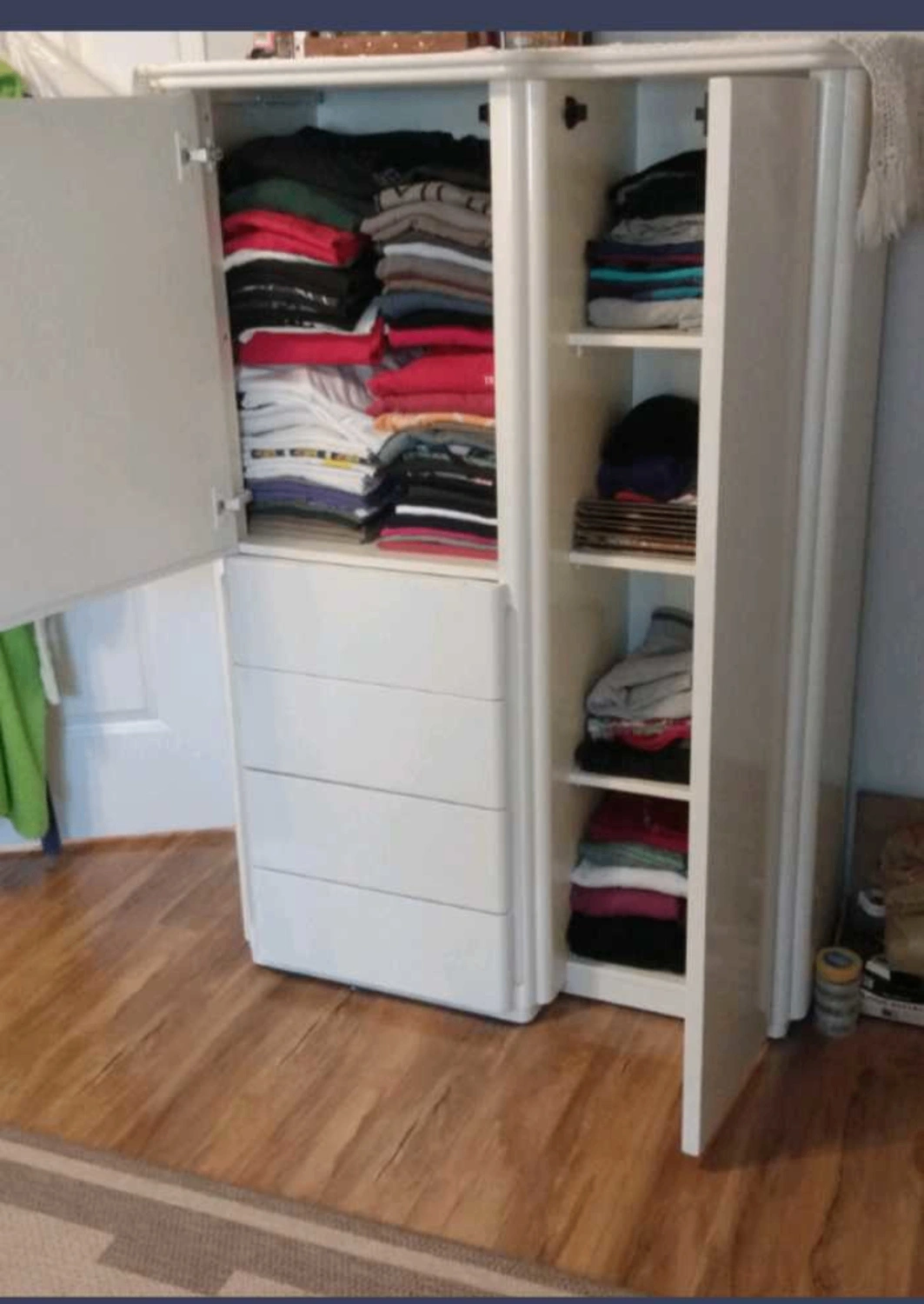1 armoire with 2 cupboards and 4 drawers