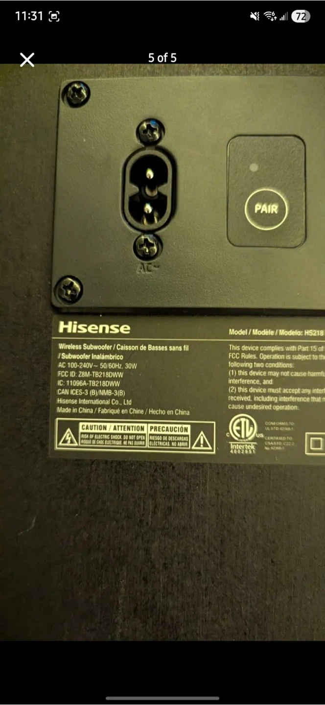 Hisense 38" 2.1 Channel Soundbar with Wireless Subwoofer