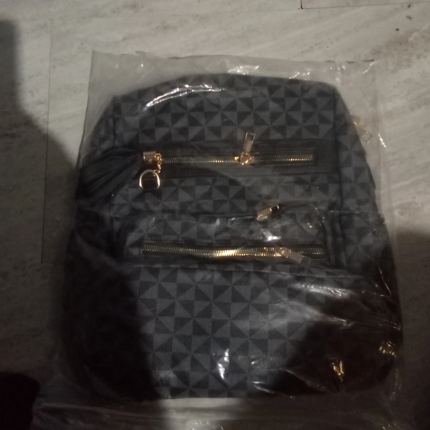 New backpack. Geometric pattern. Multiple zipper compartments. Gold-toned hardware. Adjustable straps. Perfect for everyday use.