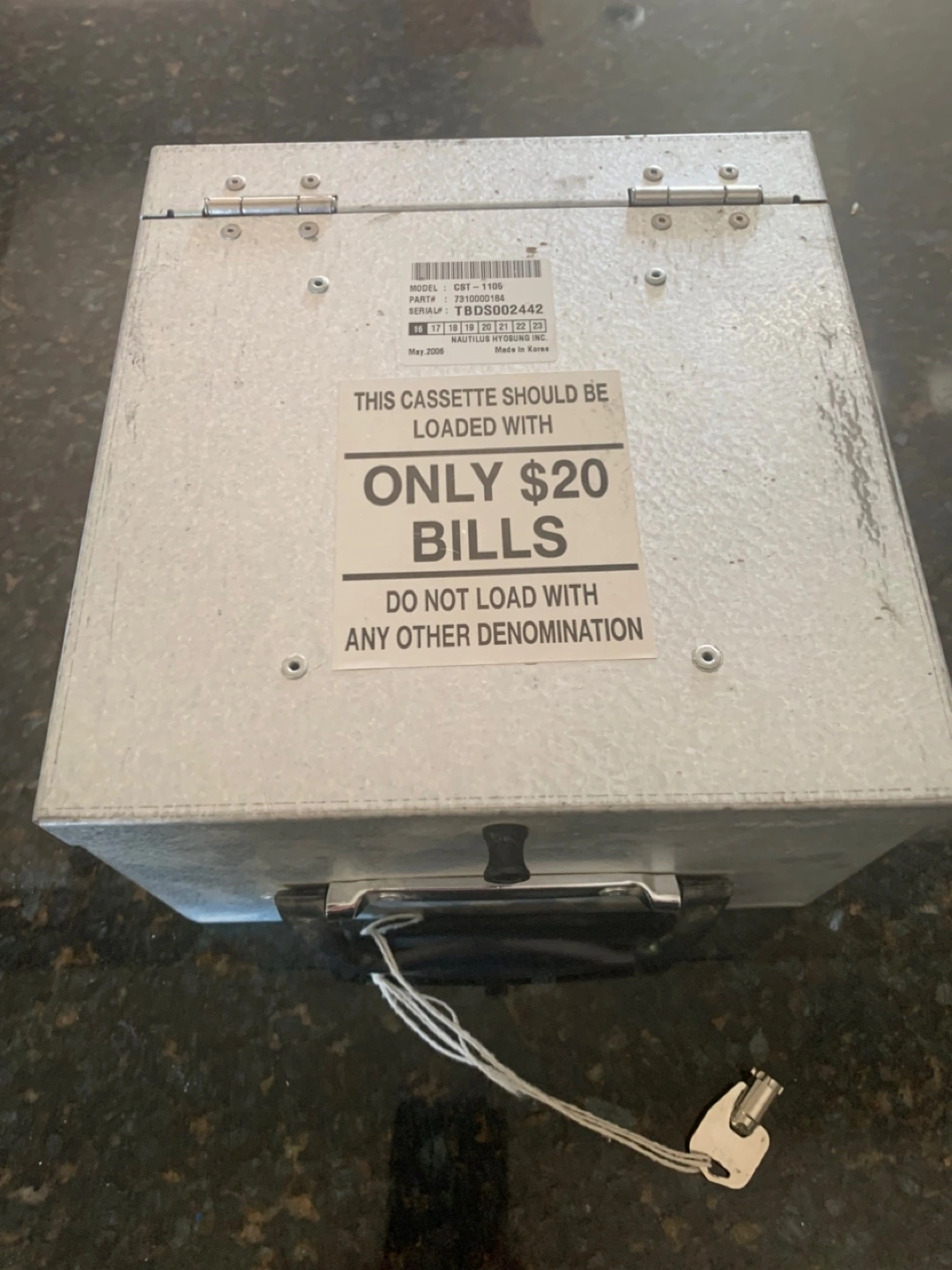 Buy & SellBill Cassette for $20 billsBill Cassette for $20 bills$200Metal cash cassette. Loads with $20 bills only. Use in ATM. Has key.ConditionLike newBrandNautilus Hyosung WHERE TO MEETMayfieldView MapSELLERBonnieMayfield100 reviews0 chats·0 favorites·168 viewsSEND CHAT TO SELLERHi Bonnie! I’m interested in your listing.Hi Bonnie! I’m interested in your listing.Get the Karrot app to chatSign In to chat