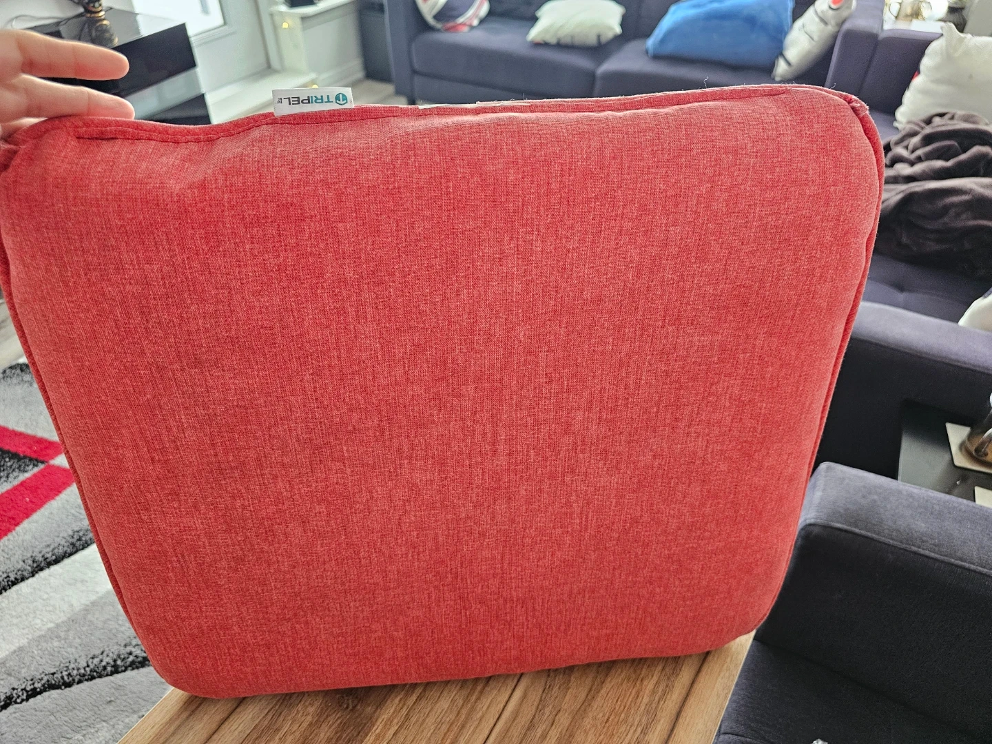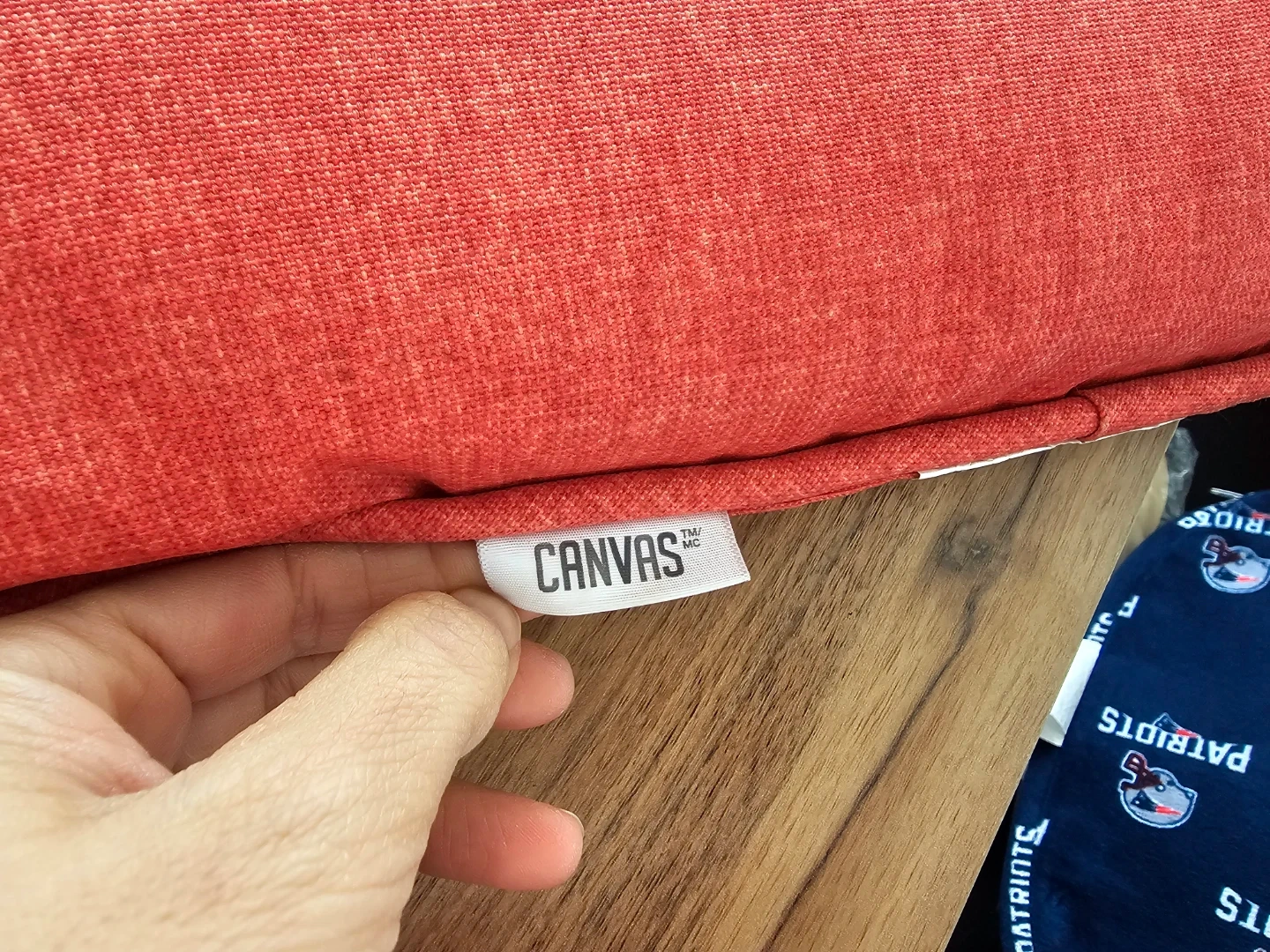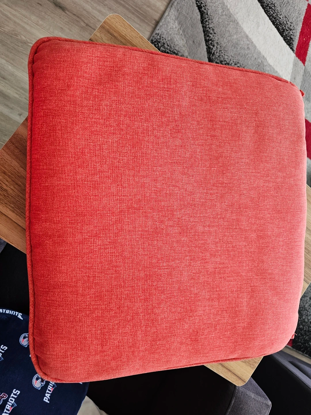 Selling a Canvas seat cushion in carrot red color . It's in great condition and ready to add a pop of colour to your space!