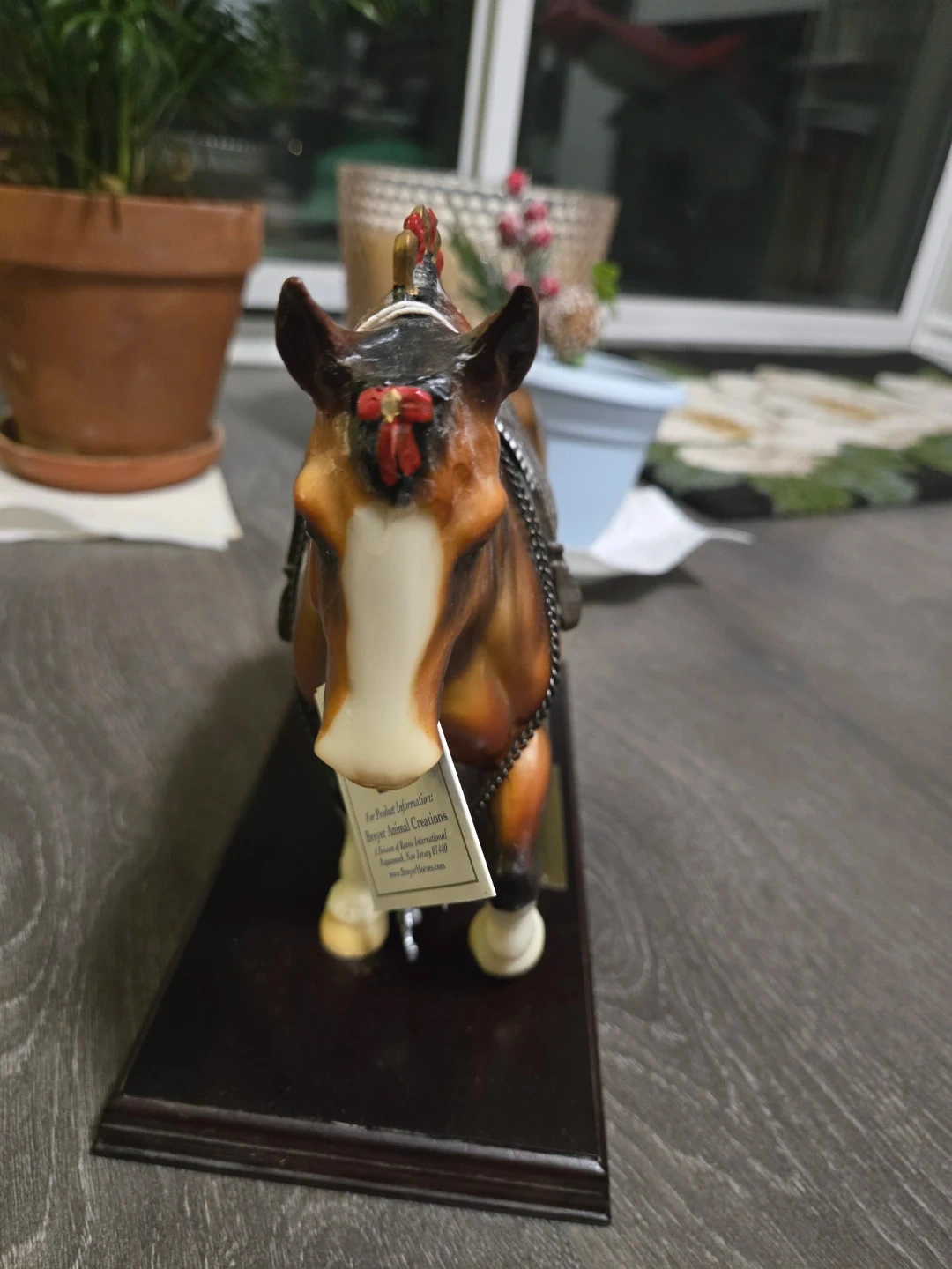 Selling a Breyer Clydesdale Stallion model horse. It's in great condition and would make a lovely addition to any collection! Comes with a wooden stand. Makes a great gift for horse lovers.