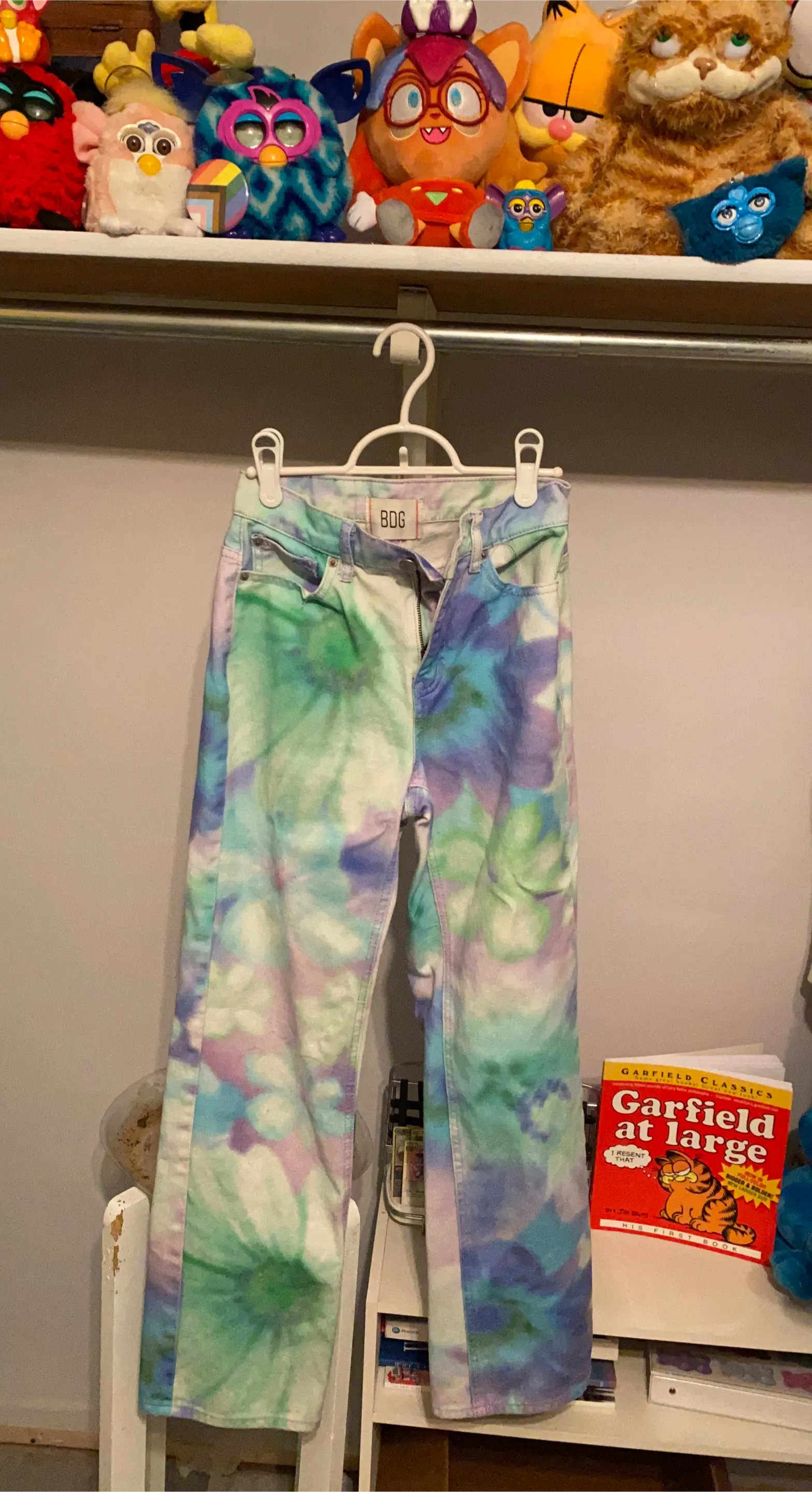 Selling a pair of BDG jeans with a cool tie-dye pattern! They're in great shape and ready for a new wardrobe