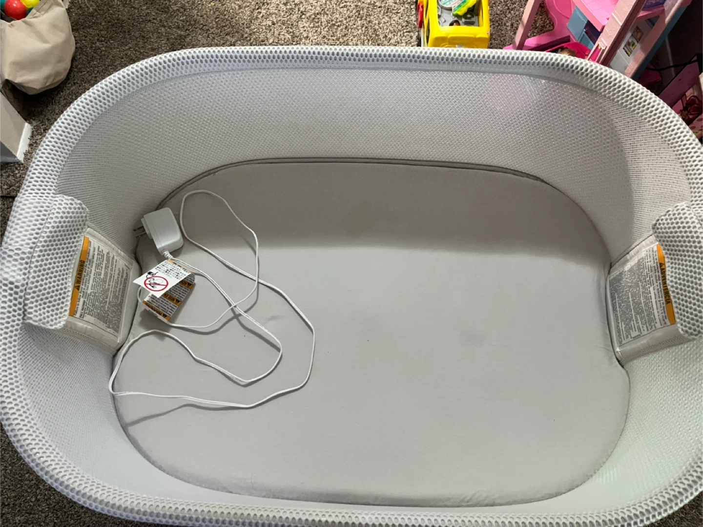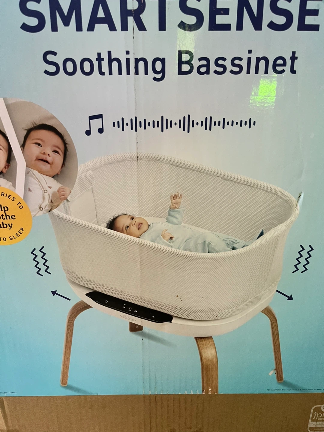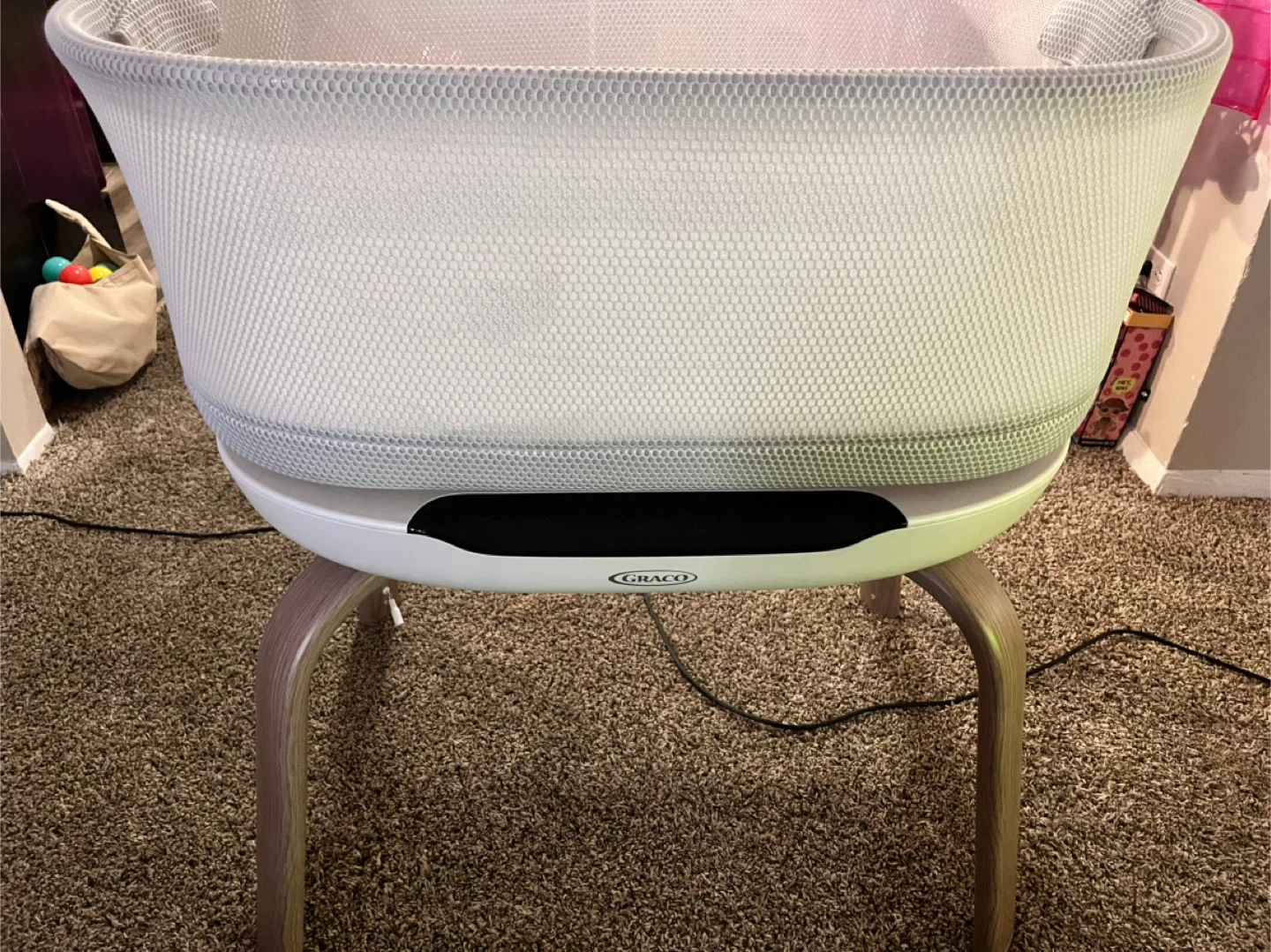 This Graco SmartSense Soothing Bassinet is designed to help calm your baby. It includes the bassinet and power adapter. Mesh sides offer breathability.