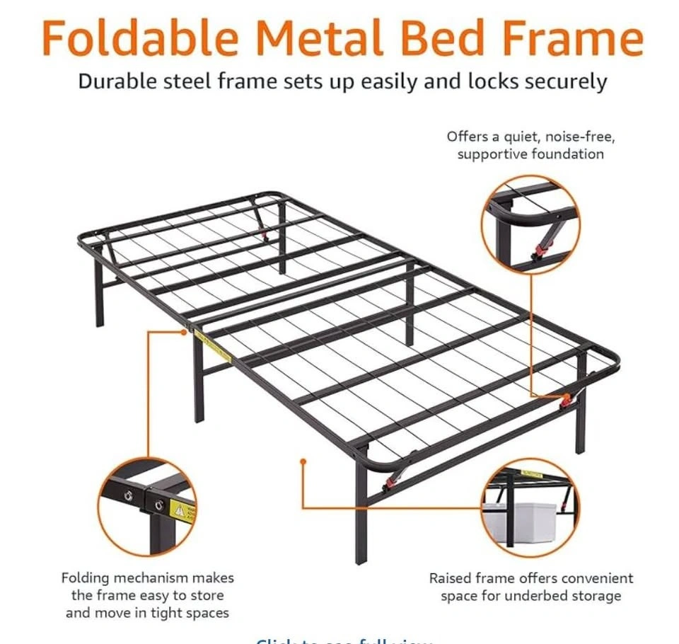 Foldable Metal Platform Bed Frame - Twin Size Steel Support 🧡