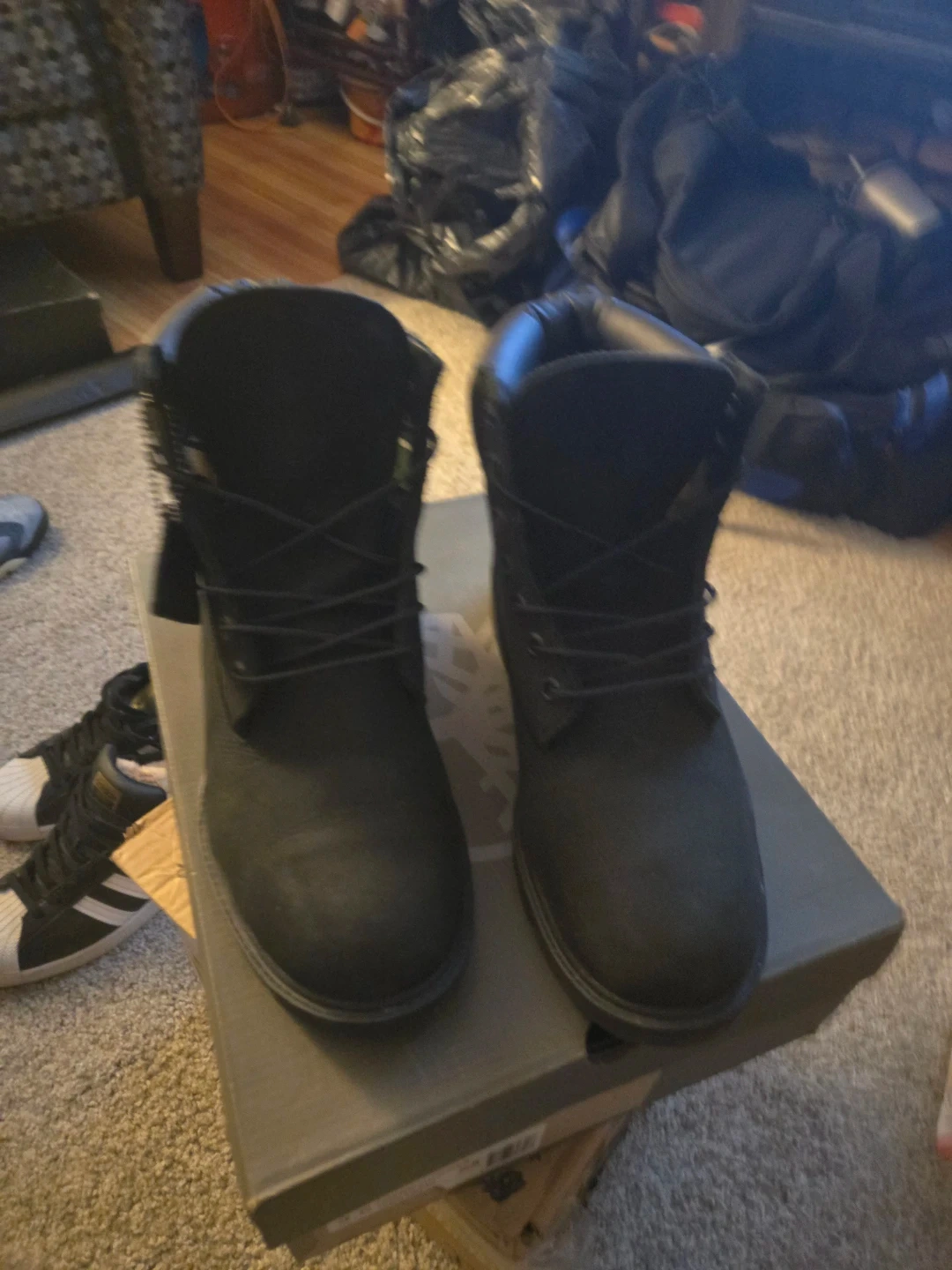 Buy & SellTimberland Black Suede BootsTimberland Black Suede Boots$65Timberland waterproof boots in black suede. Lace-up closure. Includes original box.ConditionGoodSize9.5BrandTimberlandWHERE TO MEETCheck LocationView MapSELLER350638Sunnyside100 reviews1 chats·0 favorites·24 viewsSEND CHAT TO SELLERHi 350638! I’m interested in your listing.Hi 350638! I’m interested in your listing.Get the Karrot app to chatSign In to chat