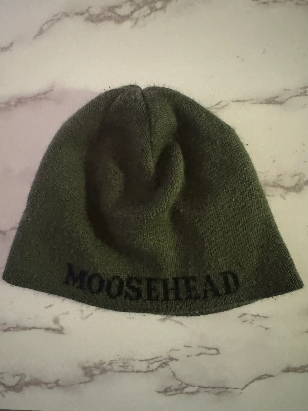 Green knit beanie with "MOOSEHEAD" embroidered on the front and a moose graphic on the back. It's a cozy choice for cooler weather!